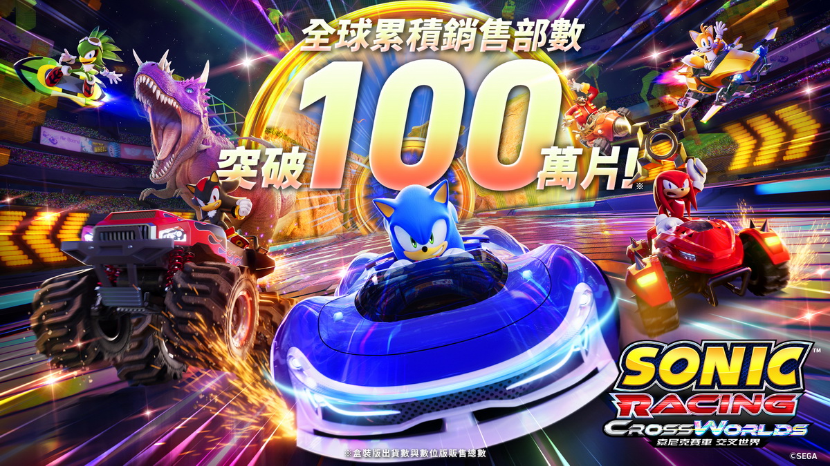 我們也宣布《索尼克賽車 交叉世界》的全球累計銷量突破100萬套。(※1)此外,本作於Steam評論獲得「壓倒性好評」,更於評論彙整網站「Metacritic」的玩家評分獲得9.0以上的高分,屢次創下佳績,贏得廣大玩家的支持。(截至10月21日,PS5®版與Steam版的評分)體驗版亦於各平台發布中,請不要錯過試玩機會。