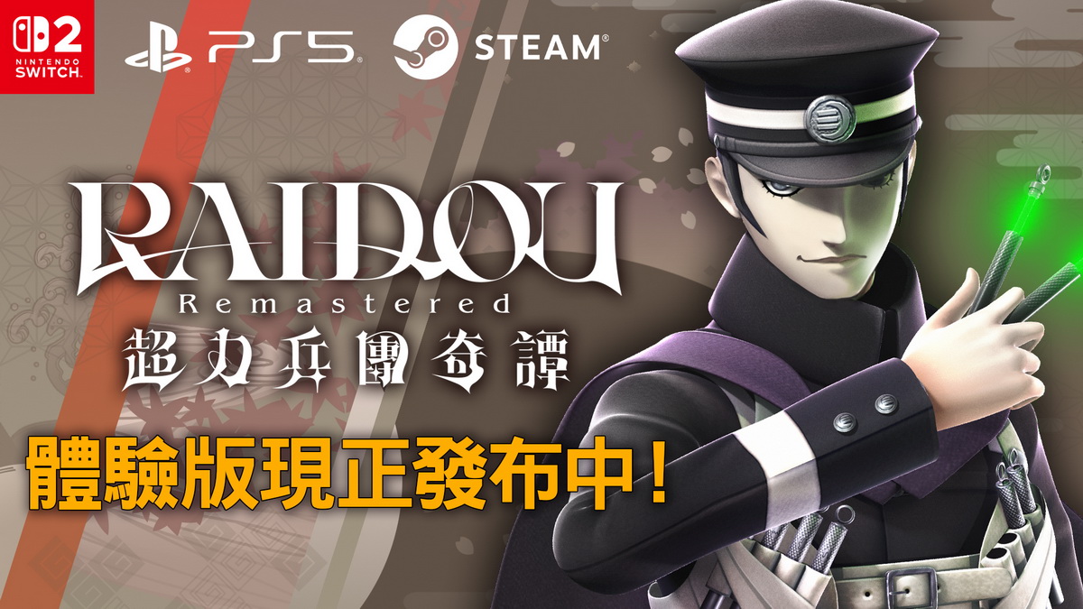 世雅股份有限公司宣布,好評發售中的ATLUS RPG《RAIDOU Remastered: 超力兵團奇譚》現已在Nintendo Switch™ 2、PlayStation®5、Steam的數位商店發布了免費體驗版。還沒遊玩過《RAIDOU》的玩家請勿錯過!
