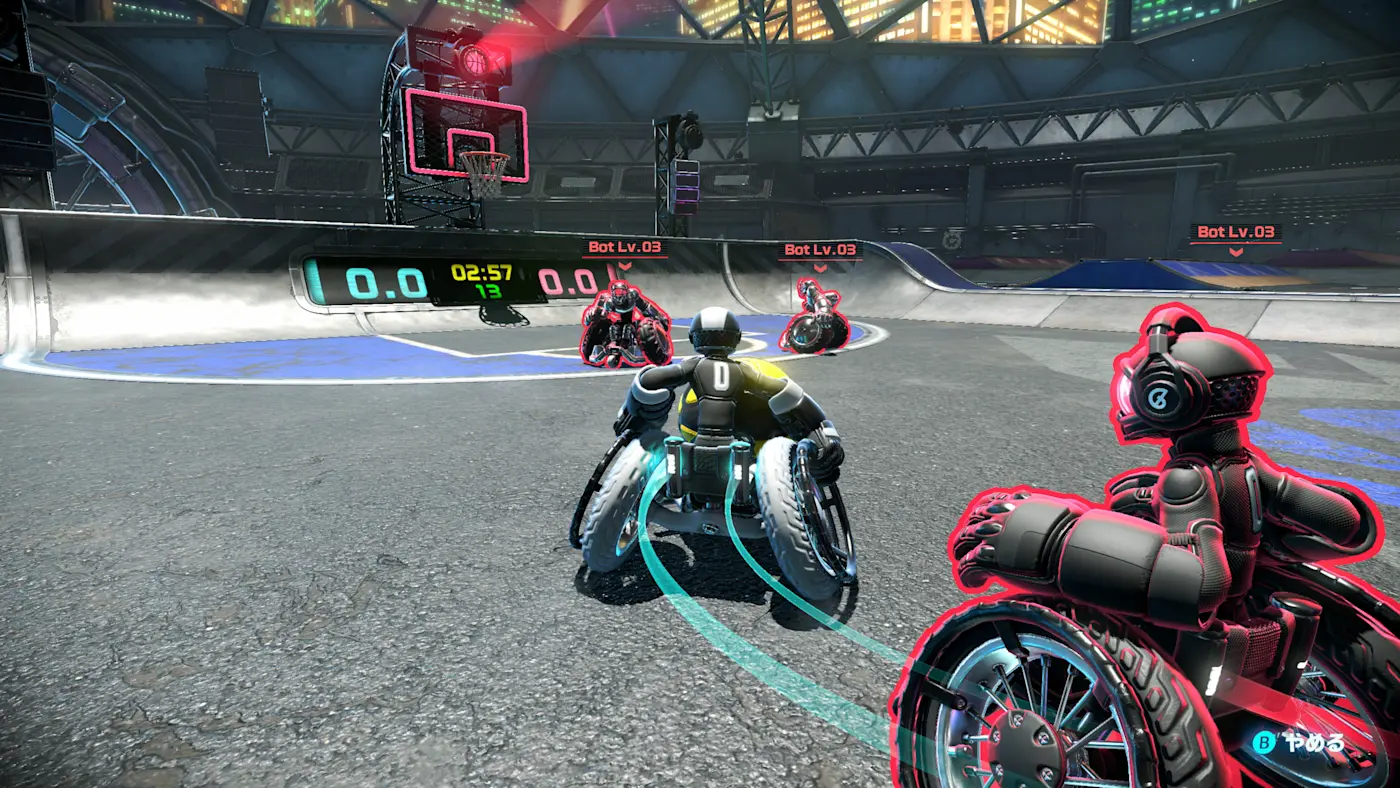 完成教學後,可前往被稱為「公園」的場所進行個人練習,或和電腦玩家對戰。最高可挑戰第3階段的強度,請體驗看看《拖曳&突破》的比賽!