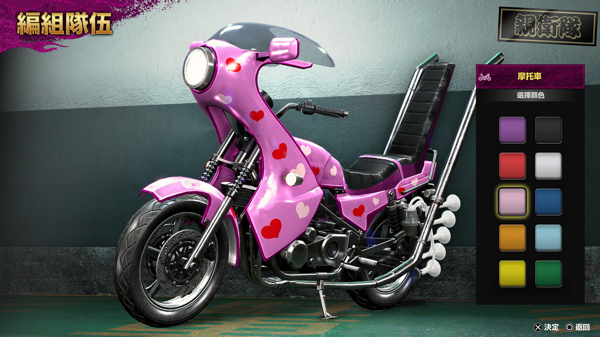 你可以自訂4支部隊各自的飆車服和摩托車的外觀。不僅可以自由設定顏色和圖樣,還能在飆車服的背後刺上各種熱血口號。自訂飆車服和摩托車,打造你喜愛的隊伍吧!