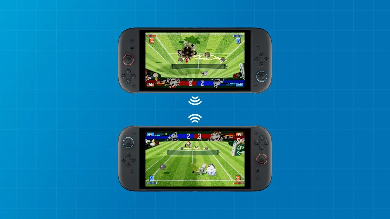 攜帶Nintendo Switch 2聚在一起,在各自的螢幕上進行對戰。如果有兩台主機,便能在不分割畫面的情況下進行 2 對 2 的雙打。