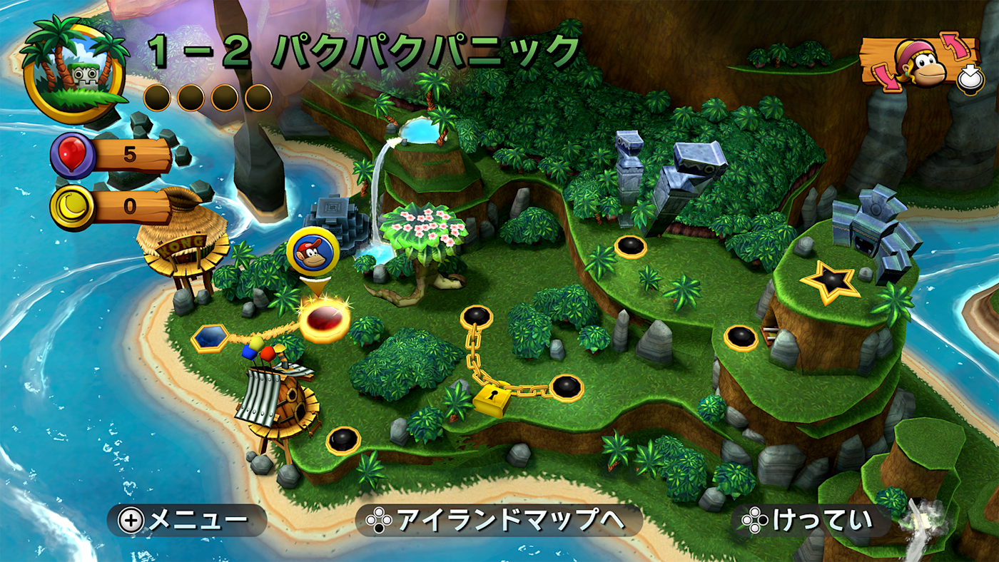 在關卡裡取得木桶的時,能選擇蒂克斯剛或狄狄剛作為夥伴一起冒險。