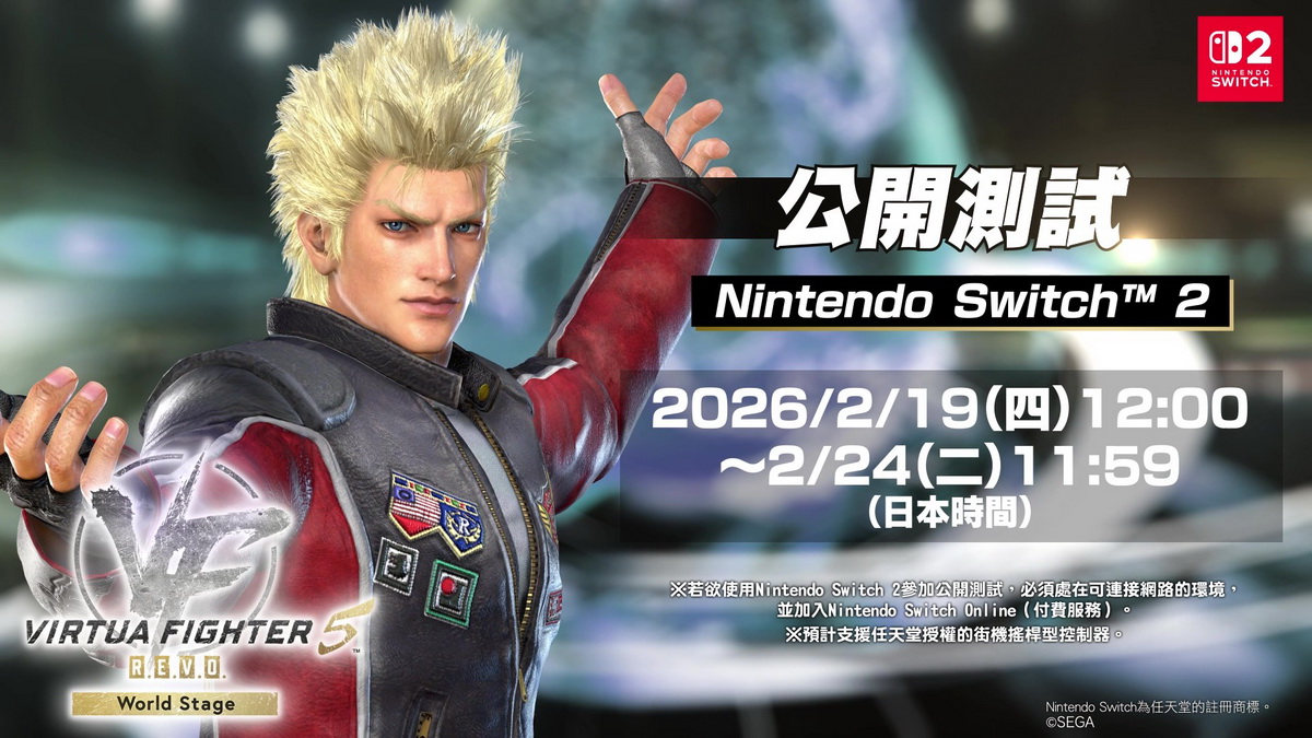 Nintendo Switch 2版《Virtua Fighter 5 R.E.V.O. World Stage》的公開測試將於2月19日(四)至2月24日(二)舉行。