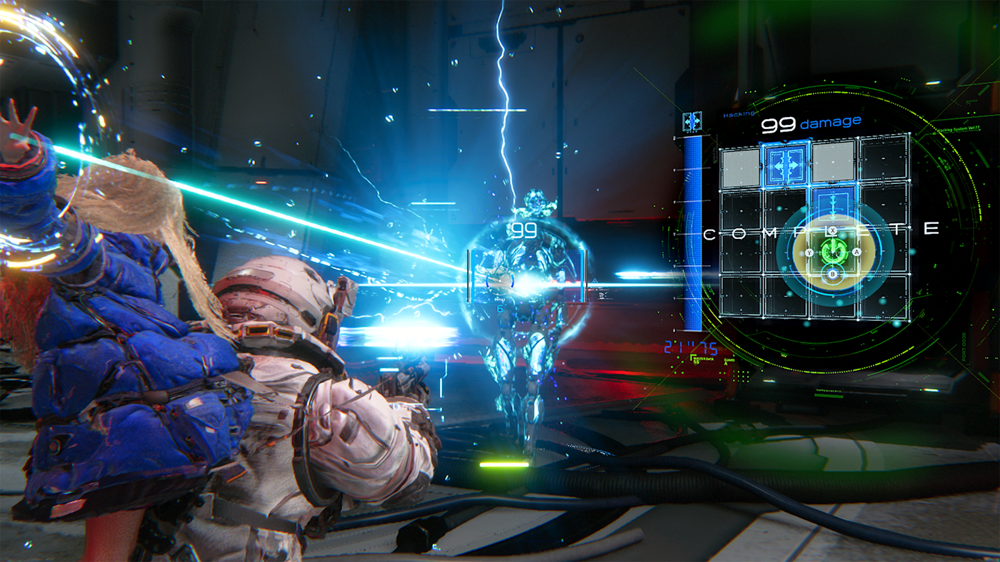 玩家於本作需同時操作身穿大空衣的休和人型機器人少女黛安娜,以同一控制器操作黛安娜私的駭入和休的射擊,在月球基地對抗敵對的機器人。