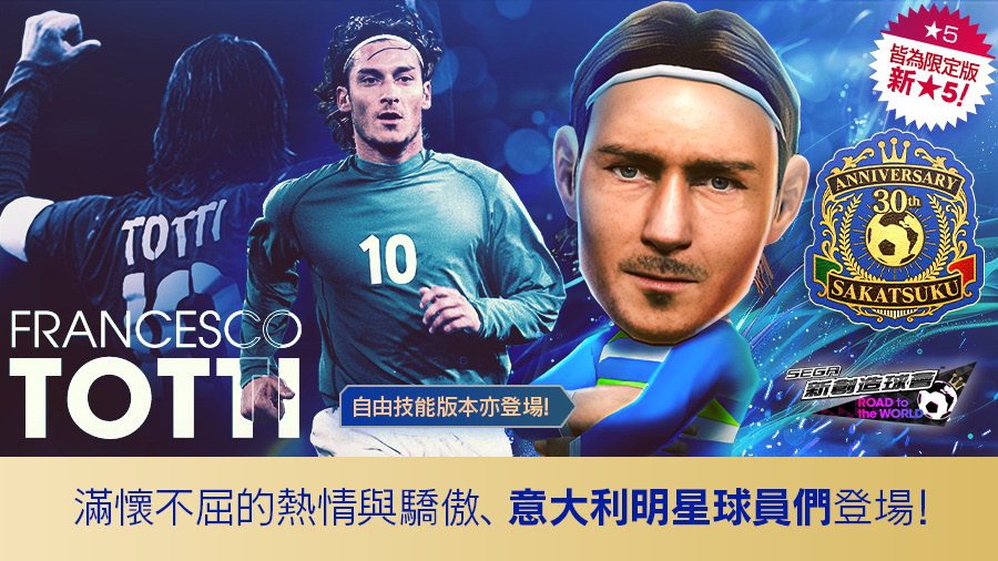 好評上市中的足球模擬經營遊戲《SEGA 新創造球會 ROAD to the WORLD》(以下稱 創造球會RTW)自2026年2月12日(四)起,將舉辦意大利的傳奇「托迪」等超級球星,以擅長戰術為反擊的新★5球員登場的「SAKATSUKU 30th Anniversary LEGEND SCOUT」。