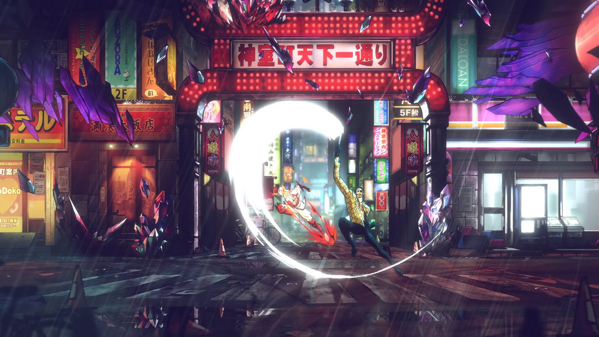 頭目「真島吾朗」使用匕首與充滿壓迫感的近身戰展現出獨有的魅力,還有著在旋轉的同時朝目標猛衝的招牌招式,以及配合分身發動的詭異攻擊等,重現了原作要素的動作。能夠體驗到真島吾朗在 2D 畫面中戰鬥帶來的躍動感!