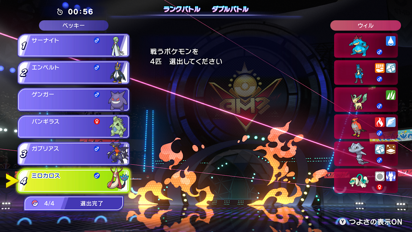 在正式對戰前,雙方會互相展示各自的隊伍成員,並從中選擇實際參加對戰的寶可夢。需一邊預測對手可能派出的寶可夢,一邊決定自己的出戰寶可夢。