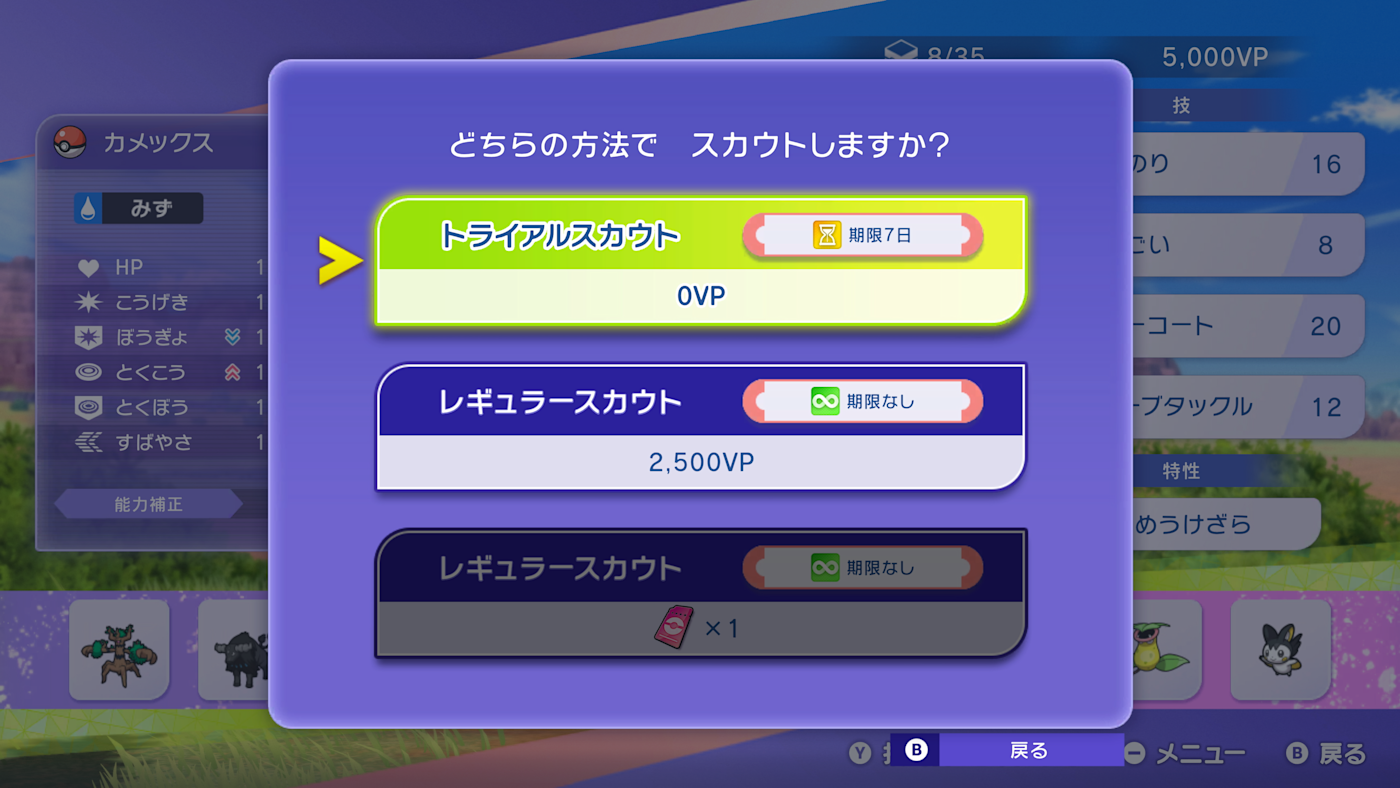 透過訓練,可使用VP來變更寶可夢可使用的招式、能力調整、特性等。