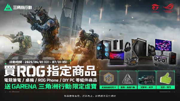 除賽事熱血展開外,《Garena® 三角洲行動》更攜手 ROG 推出專屬聯名活動,至 7 月 31 日止,凡購買 ROG 指定商品,即可獲得《Garena® 三角洲行動》限定虛寶序號乙組,其中包含永久載具和噴漆造型。無論是久經沙場的老將,或剛入戰區的新兵,現在就是升級裝備、展現實力的最佳時機。