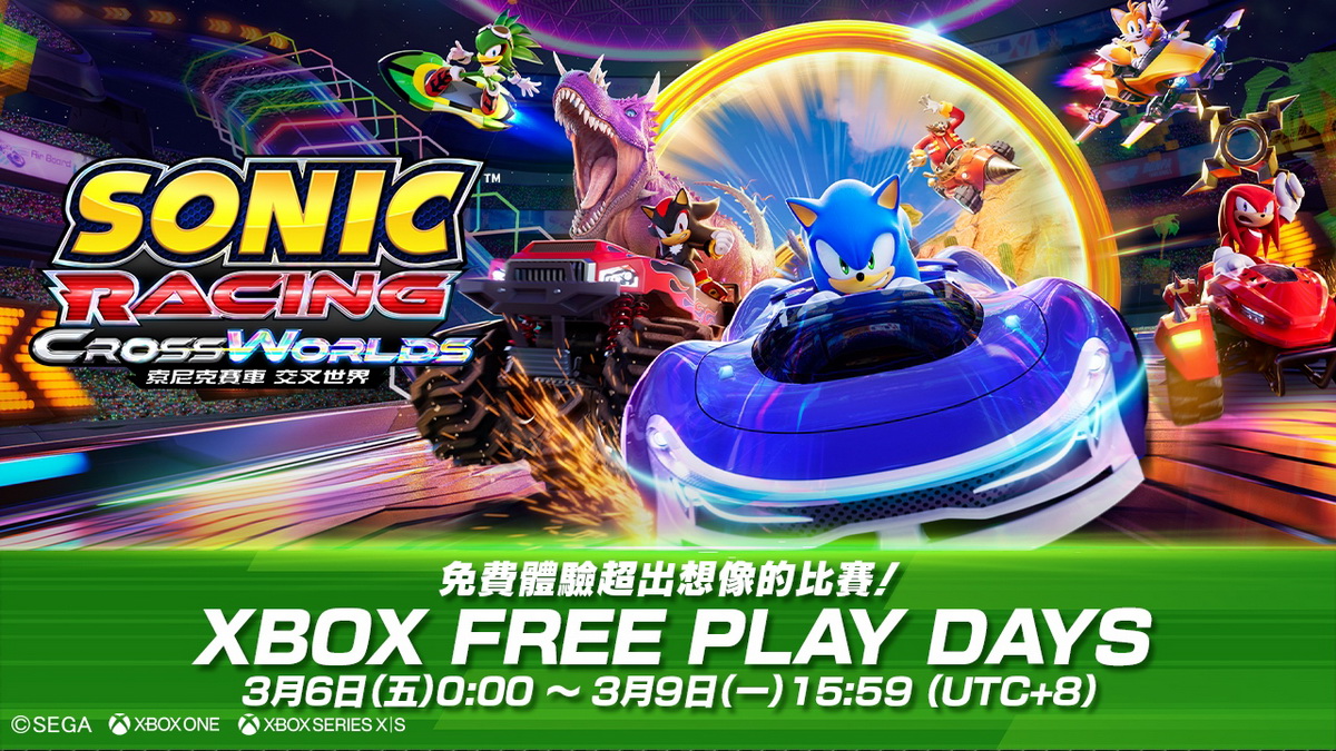 《索尼克賽車 交叉世界》將於Xbox的限期免費遊玩計畫「Free Play Days」中登場。