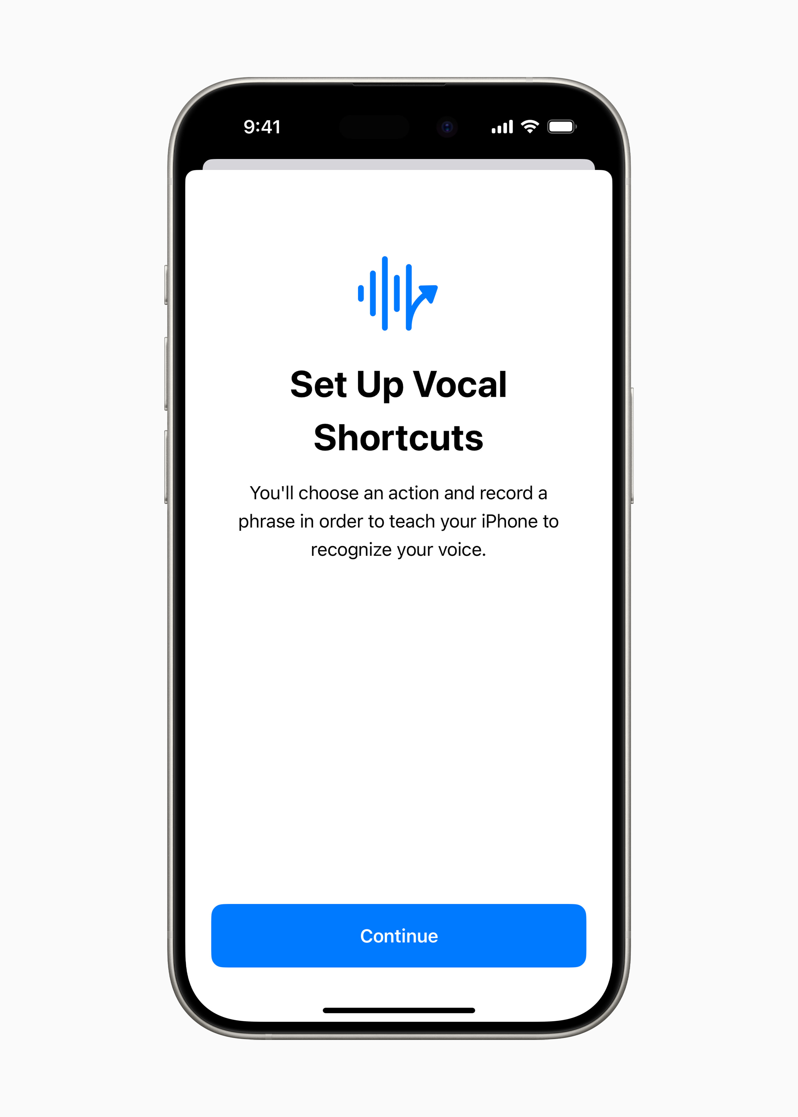 透過「語音捷徑」,iPhone 和 iPad 使用者可以指定 Siri 能理解的自訂話語,用以啟動捷徑並完成繁複的任務。另一項新功能「聆聽非典型語音」為使用者提供一個選項,能加強更多種語音的辨識功能。「聆聽非典型語音」使用裝置端機器學習技術來辨識使用者的語音模式。這些功能專為影響言語的後天或漸進式病症 (例如腦性麻痺、肌萎縮性側索硬化症 (ALS) 或中風) 患者而設計,奠基於 iOS 17 為不說話或有失語風險的使用者所推出的功能,提供新境界的自訂功能和控制選項。