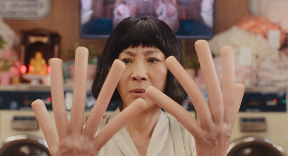 在全球掀起討論話題的奇幻動作片《媽的多重宇宙》劇情為了拯救世界需要連結到女主角秀蓮(楊紫瓊飾演)不同的平行宇宙,讓楊紫瓊與飾演女兒的史蒂芬妮許展現許多不同的造型,呈現不少精彩的時尚秀,光是楊紫瓊一個人就至少有40個不同的造型,包含:《臥虎藏龍》俞秀蓮、女明星、廚師、京劇演員等,甚至一天就換上10種不同的造型,,也因此致敬不少電影,看一部抵百部片,在時間跟預算有限之下對髮型設計總監Anissa Salazar跟服裝師Shirley Kurata是一大考驗,像是為了呈現京劇造型不只上網找了許多影片做參考,還得請出「谷歌大神」進行翻譯,在打造女明星宇宙的造型時,兩人也努力研究王家衛電影,天馬行空塑造熱狗宇宙的時候,也讓楊紫瓊吃了不少苦頭,日前還在社群曬出自己為戲戴「熱狗手套」過敏紅腫的照片。