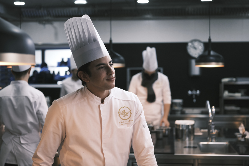 飾演主角的是法國網紅利雅德,他以搞笑短片和模仿防彈少年團等影片,在社群平台圈了數百萬粉絲,去年被法國行銷策略雜誌《Stratégies》評為「年度影響力人物」並在坎城影展訪問李政宰,機智的表現逗樂對方,影帝承諾:「來韓國跟我聯絡,我帶你去吃好料」這位網帥完全沒在客氣,隨即飛往南韓讓李政宰請客,兩人合照引發網友熱烈討論。利雅德正因這種大方又率性而為的人格特質,讓他一直擁有高人氣,也是成功的關鍵,因為一直想脫離舒適圈的他,過去三年參加過許多電影試鏡,2021年無意間在坎城紅毯遇到《摘星甜點王》一位製片,對方跟他攀談,利雅德不懂裝懂跟著侃侃而談,竟意外獲得了角色,導演塞巴斯蒂安笑虧:「為此,他還接受甜點跟冰雕的嚴格培訓,在廚房跟學徒們一起練習:「在此之前,我從沒碰過擀麵棍,現在我已經能製作各種甜點,超酷!」