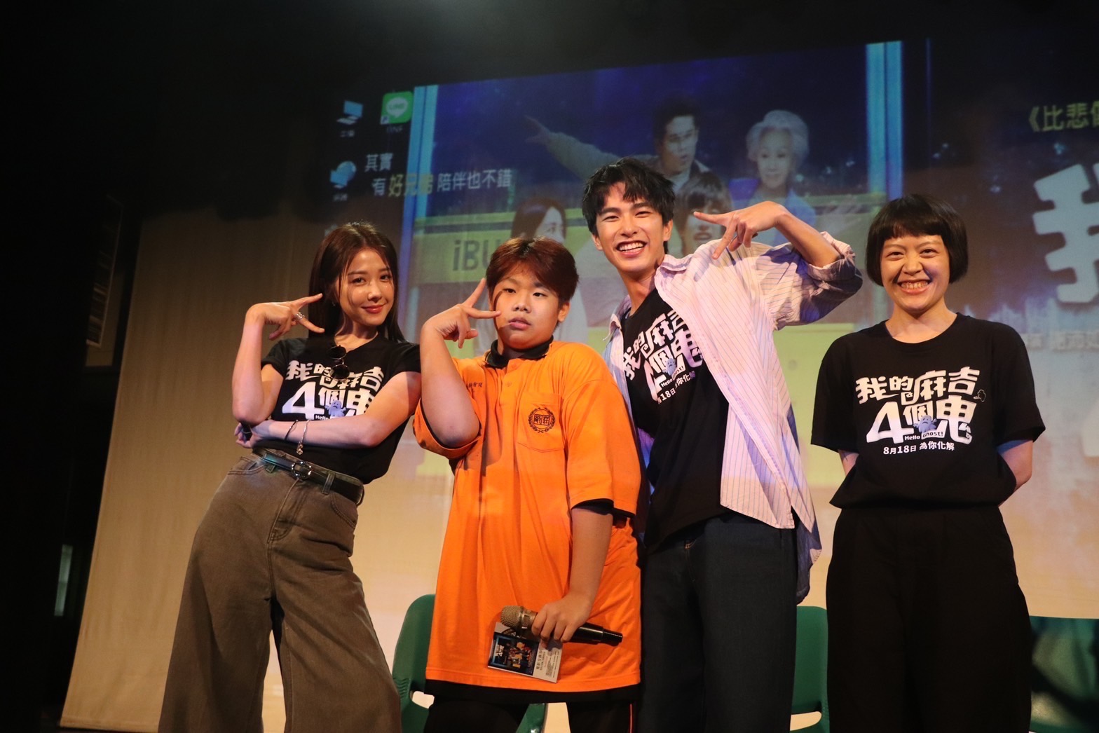 結束校園應援會後,影人們連跑3場影廳見面會,在信義威秀影城現場出現許多一刷的新朋友,更有來自山東青島的同學,將在台觀影初體驗獻給《我的麻吉4個鬼》,並哽咽直呼電影真的好令人感動。現場邵雨薇及曾敬驊寵粉福利大放送,曾敬驊大方挺出胸膛讓粉絲聽好聽滿心跳聲,邵雨薇也即興演出鬼大叔版早安答鈴,讓粉絲獨家專錄。場外還有來自中南部的粉絲,因手速不夠快,沒搶到影人見面場門票,卻依然熱情來現場相挺。《我的麻吉4個鬼》本週日(9/10)還有三場映後QA,分別在台北喜滿客影城絕色店及台北西門in89豪華影城,機會難得欲購從速,歡迎至各影城及ez訂訂票(https://reurl.cc/EoAp0a),更多電影及活動資訊請至「我的麻吉4個鬼」官方粉絲專頁(https://www.facebook.com/helloghostmovie)與官方IG(https://www.instagram.com/helloghostmovie)查詢。