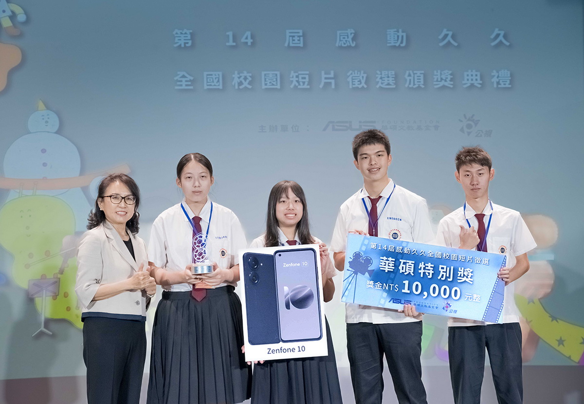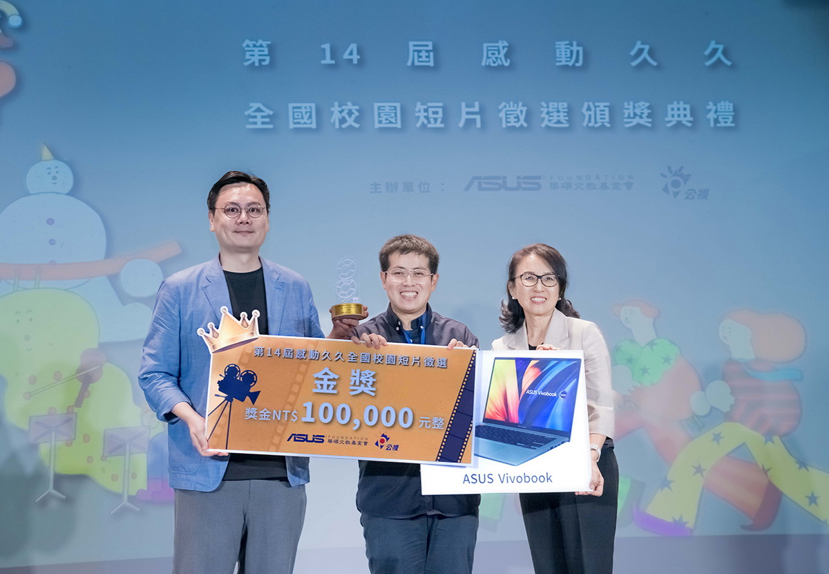 華碩文教基金會與公共電視為鼓勵台灣新世代透過影像揮灑創意、傳遞感動,共同籌辦「感動久久」全國校園短片徵選,今日於華碩企業總部舉行第14屆頒獎典禮,邀請四位資深導演賀照緹、傅天余、許承傑、陳映之與演員劉品言評選。