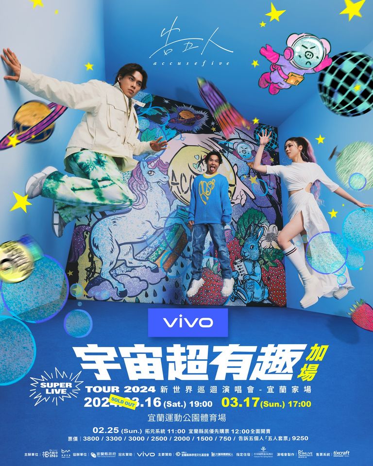 全球手機大廠vivo不僅持續以創新科技改寫手機歷史,更積極以旗下多元的產品線組合搶攻年輕族群市場。於今(29)日更宣布將獨家冠名贊助告五人《宇宙超有趣》2024 SUPER LIVE TOUR 新世界巡迴演唱會(註1)。vivo表示,告五人以多樣風格與音樂創作在眾多樂團中脫穎而出,唱作俱佳的硬實力更是擄獲許多年輕族群的心,堅持及努力與vivo的品牌理念不謀而合,更呼應vivo最新品牌宣傳片「用我的拍」中不斷追求卓越、創造驚喜之精神,vivo更期盼藉由「vivo告五人《宇宙超有趣》2024 SUPER LIVE TOUR 新世界巡迴演唱會」號召更多V粉,持續傳遞堅持信念與挑戰自我極限的理念。為了回饋廣大V粉的支持,vivo亦將大方送出15組雙人門票,邀請大家一同以自信與實力在生活中綻放更自信耀眼的自己!