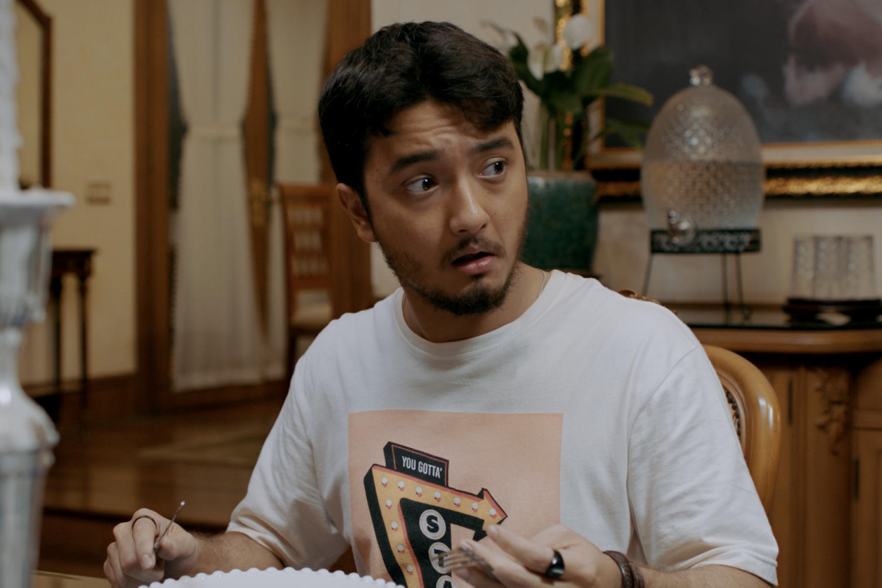 本次演出,也是他演員生涯的全新體驗,由於他所飾演的角色,是生活在村莊中的「貝塔維人」,他特地為此勤練當地方言:「導演創造的世界觀非常詳細,所以我們要使用當地方言演出,比較符合我們所居住的地區設定。」此外,他更一甩過往帥氣形象,不畏臉部過敏,每天頂著三層底妝上場,只為讓膚色更加黝黑,他也忍不住感嘆:「化妝真的很癢,但這都是為了故事所必須要做的!」敬業精神令人欽佩。