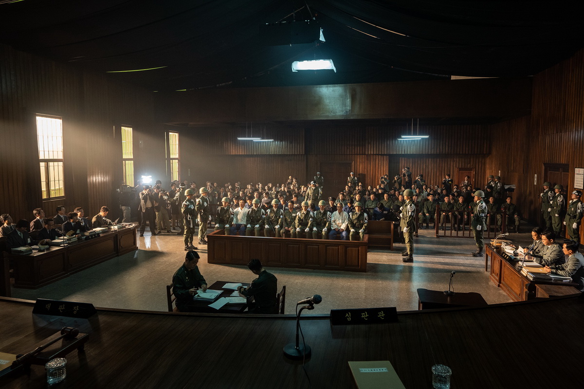 製作團隊為了給觀眾呈現更加逼真的審判場面,就連細節都不放過。導演進一步表示:「因為法庭戲是片中最重要的場面,所以透過拍攝前的田野調查,我們準備將實際在法庭上發生的很多事情,忠實地呈現在台詞當中。」也讓片中登場的法庭戲以現有紀錄片為基礎,對律師團和旁聽者的位置、被告人數進行完美的調整。而且為了拍攝法庭場面,劇組更出動130多位演員,而包括工作人員在內更有200多人,讓法庭場面更加壯觀。就連攝影也有巧思,攝影導演洪載植表示:「為了展現整體氛圍,從寬鏡頭開始的法庭戲,到最後利用緊湊的特寫鏡頭,以更加接近人物感情的方式展現出差異性。」