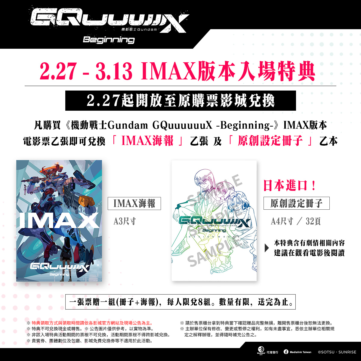 今年日本動畫電影影壇最令人矚目的跨界合作震撼登場,由「新世紀福音戰士」製作團隊:庵野秀明與鶴卷和栽攜手合作的最新鋼彈作品:《機動戰士 Gundam GQuuuuuuX -Beginning-》,庵野秀明以全新的鋼彈外型與故事線慶祝鋼彈系列問世45周年,炙熱的電影口碑讓票房在日本突破25.3億(截至2/16止),成為歷代鋼彈影史票房第2名,僅次於《機動戰士鋼彈SEED FREEDOM》,為了呈現碩大無朋的宇宙殖民地,並表現出鋼彈在太空中戰鬥的靈活性與速度感,電影首度推出IMAX版本,以最高視聽規格帶領觀眾遨遊太空殖民時代廣袤無垠的宇宙。