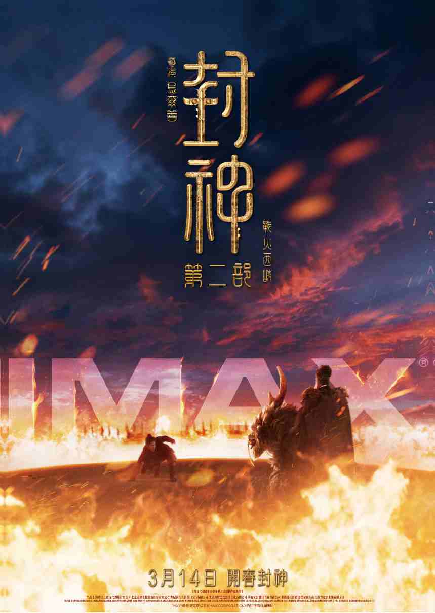 《封神第二部:戰火西岐》IMAX 專屬海報也於今日曝光!只見太師聞仲駕馭最強坐騎墨麒麟,凜然佇立於火圈之內,其面前是被熊熊烈焰圍困的姬發。面對強敵,姬發神情緊張,等待時機在絕境中奮力一擊。壯闊又搶眼的視覺風格躍然紙上,也讓人更加期待《封神第二部》在IMAX 大銀幕上更加宏大瑰麗的視覺盛宴。
