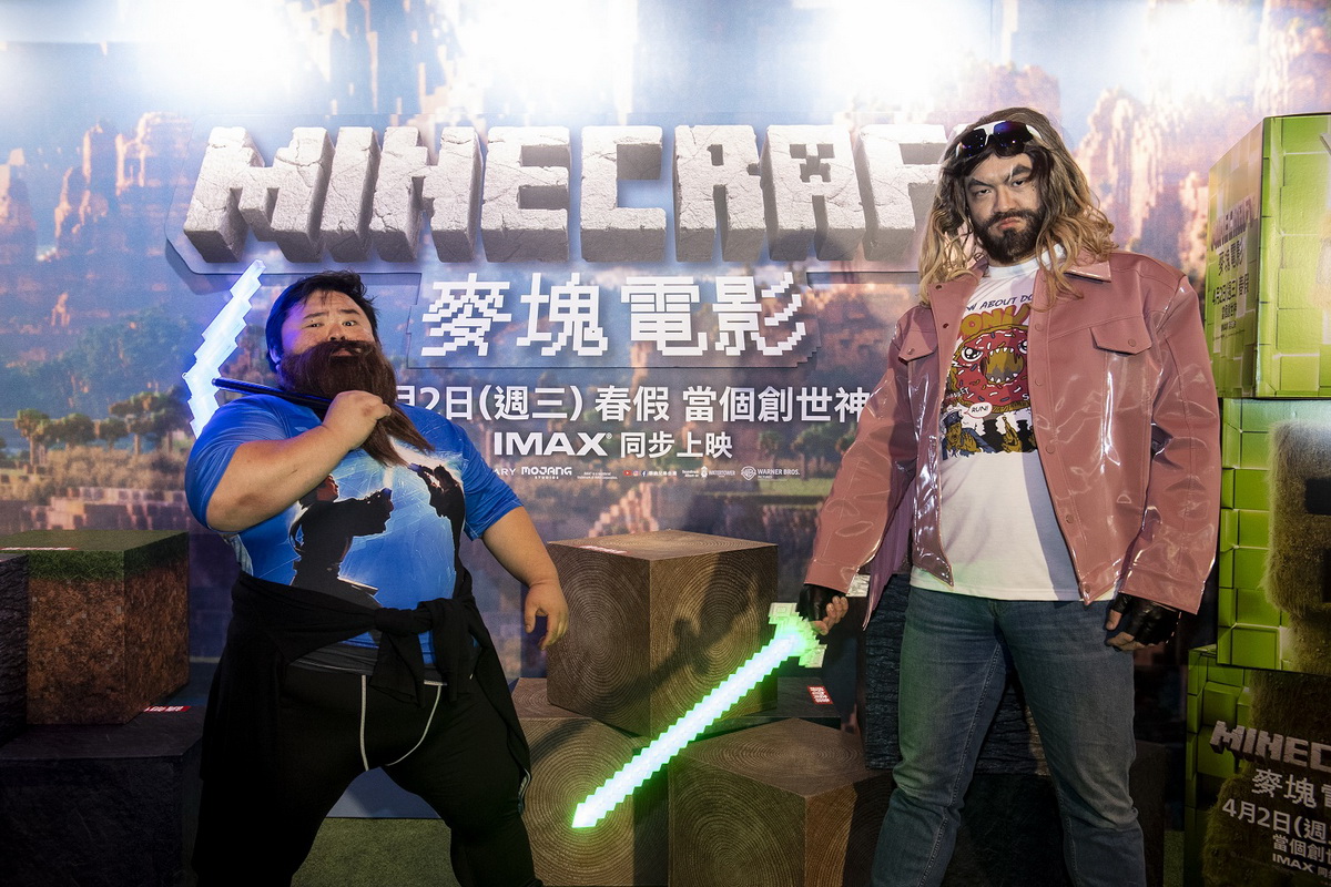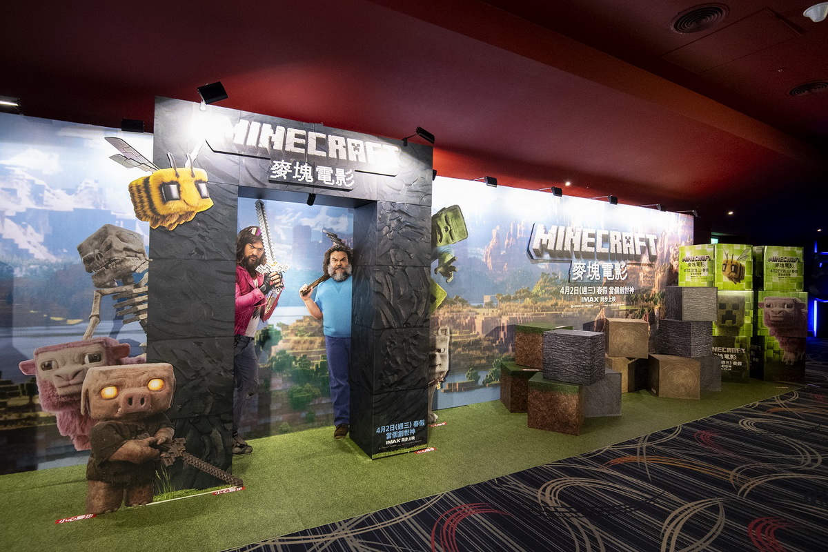 以「水行俠」建立硬漢形象的好萊塢男星傑森摩莫亞,今年首度挑戰主演喜劇片【MINECRAFT麥塊電影】,直接與影壇喜劇天王傑克布萊克聯手,將史上最暢銷遊戲《Minecraft》搬上大銀幕,成為影迷、遊戲粉絲最期待的年度大作。該片昨晚(3/31)在台舉辦首映會,兩位大咖男星在片中靠著腦洞大開的鬼點子,驚險挺過許多難關,充滿創意的劇情直接笑翻全場,更有觀眾在主角來到方塊仙境時,戴上麥塊世界中獨特的方型動物面具與劇情完美聯動,讓影廳彷彿也瞬間穿越到遊戲的世界裡。