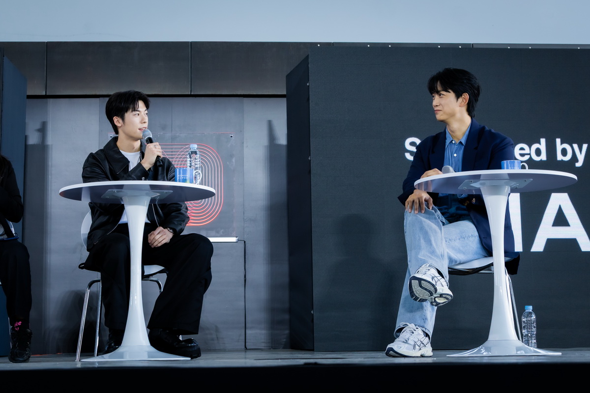 許光漢平時主要身份是演員,但偶爾也切換歌手身份演唱,與演歌雙棲的玉澤演有許多共通點,主持人特別提到兩人另一個相似之處——獲譽「初戀男神」封號。許光漢因《想見你》掀起亞洲熱潮,玉澤演則在《為你心動》與《我奪走了公爵的初夜》等作品中,以獨特戀人角色圈粉無數。被問到如何看待這個標籤,兩人皆笑說或許正因為角色中那份純粹與真摯的情感,才讓觀眾留下深刻印象。