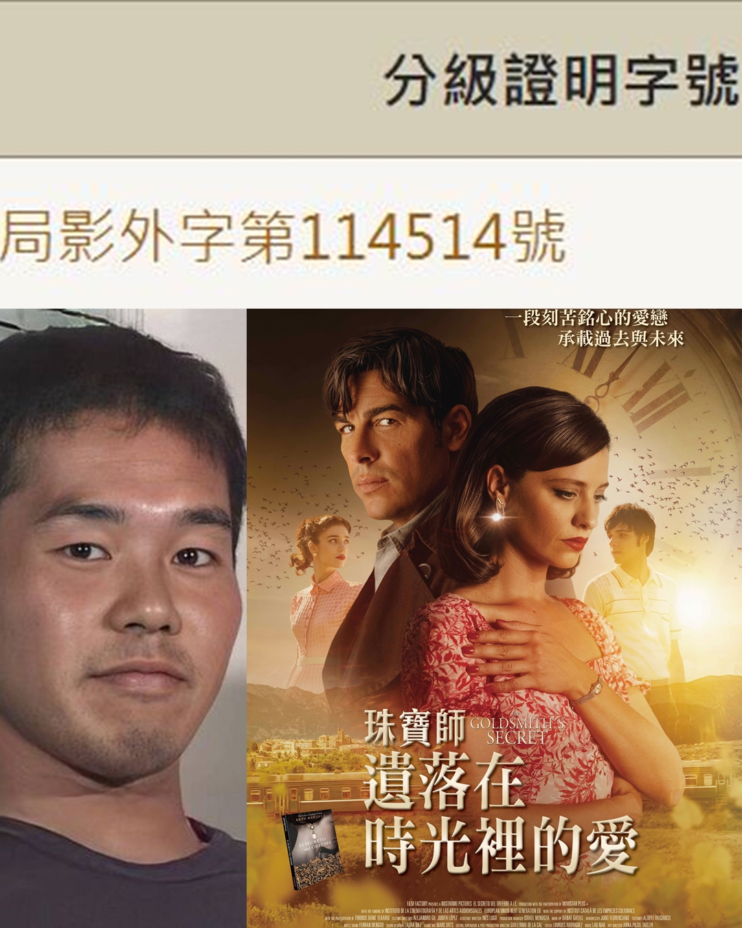 10/31上映的西班牙電影《珠寶師遺落在時光裡的愛》,近日因在文化部影視局電影片分級資訊查詢網公告級數與字號,此片的分級證明字號恰好為「114514」,沒想到這組數字剛好與台灣討論度最高源自日本的迷因「114514」一樣,網友立刻分享此迷因在Threads上,致敬這些經典迷因和引起轟動討論。