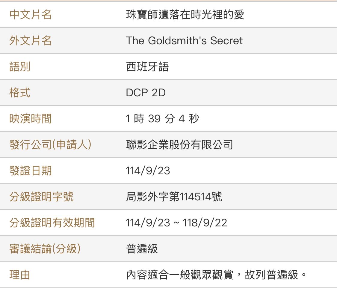 西班牙電影《珠寶師遺落在時光裡的愛》 (The Goldsmith’s Secret)即將於全台10月31日上映。本片將帶領觀眾踏上一段魔幻卻真摯的愛情旅程。預售票於博客來售票網販售。更多電影上映資訊請洽聯影電影官方臉書粉絲團和聯影電影官網。