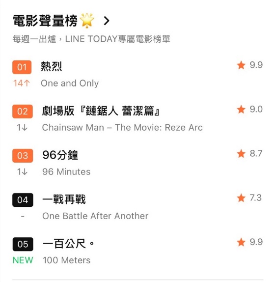 《熱烈》已在台上映兩週,廣受粉絲好評熱推,登LINE TODAY排行榜冠軍(鴻聯國際提供)