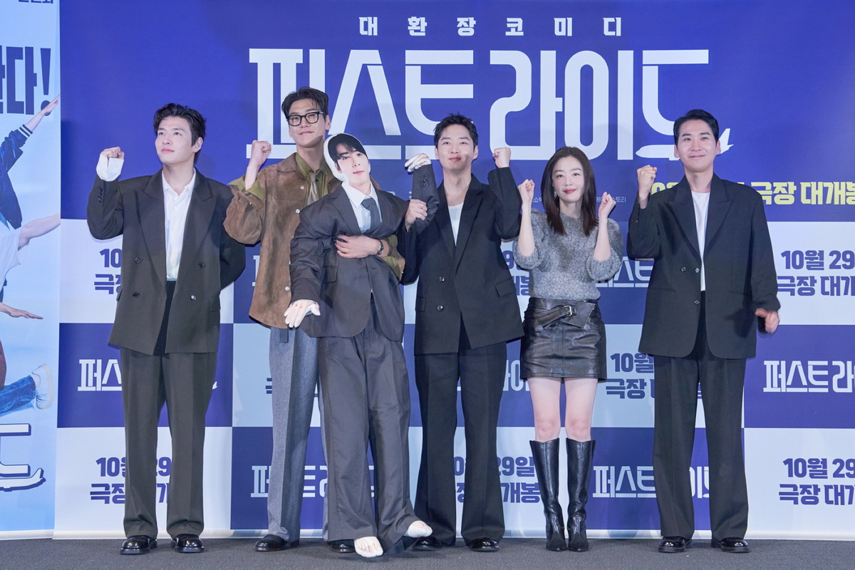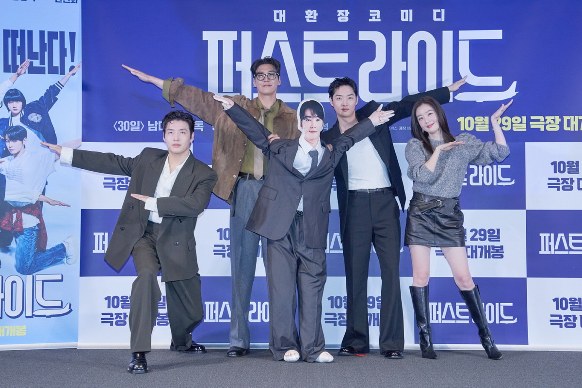 南韓「臉蛋天才」車銀優不閃兵,在人氣正夯時毅然入伍,於今年7月低調報到,讓全球粉絲相當不捨,卻也獲得多數正面支持。不過,就算身披軍裝,他仍貼心為粉絲留下溫暖驚喜,讓主演新片《放飛旅行團》成為他入伍前獻給粉絲的「最後禮物」。適逢電影即將上映,劇組昨日(10/22)於首爾舉辦媒體試映記者會,雖然車銀優本人無法出席,但劇組驚喜搬出他的等身人型抱枕,與導演南大中及四位主演姜河那、金英光、姜泳錫與韓善化(又譯韓善伙)同框站台,畫面又萌又搞笑;眾人並隔空喊話,傳遞對他的思念之情。讓人會心一笑的是,片中幾位主演集體「降齡」演高中生,儘管除了車銀優外,其他人的年紀都早已超過三十歲,卻仍在片中換上制服青春登場。面對媒體提問,他們也不好意思地笑稱:「真的很抱歉!」瞬間讓現場變成另類「道歉發表會」,氣氛輕鬆又有愛。《放飛旅行團》即將在11月14日於台灣歡樂獻映。