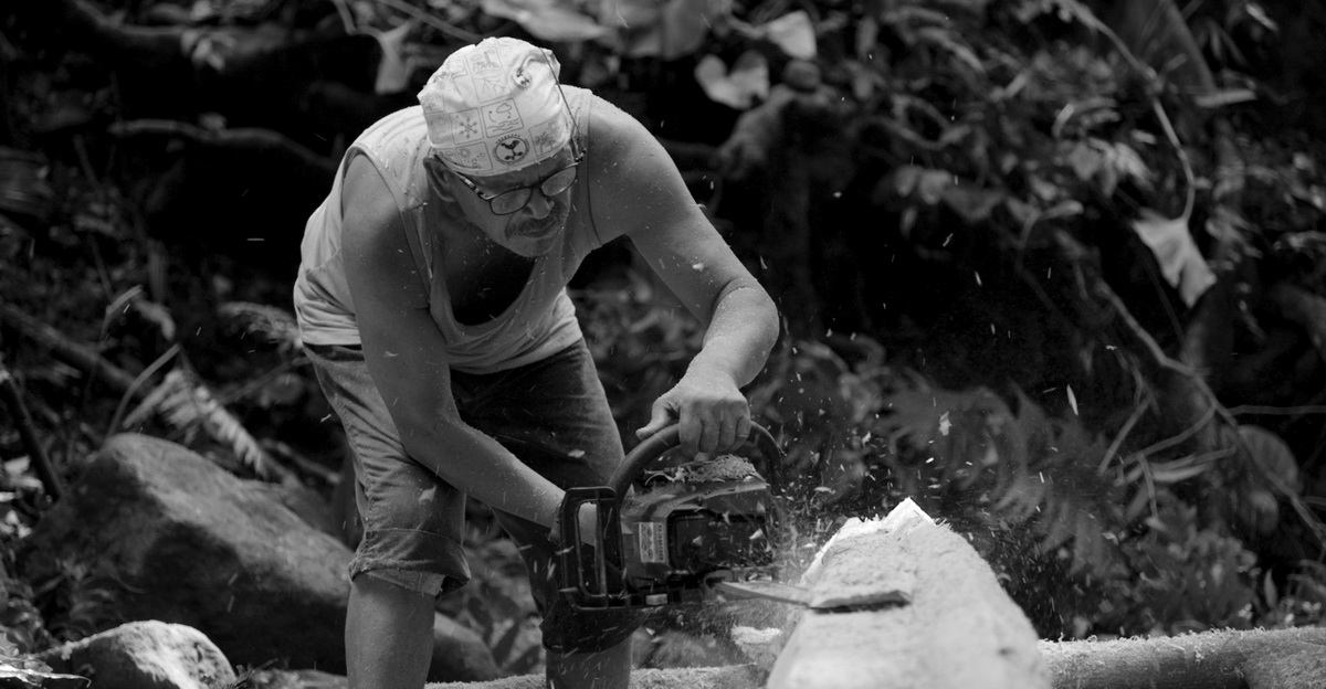 電影裡可以看見上山伐木時,夏曼・藍波安在山林間想起父親的身影,他說:「Pikavangan(二人四槳的拼板舟)是一首男人的史詩。」這種雙人拼板舟是達悟族於飛魚季重要的捕魚工具,承載族群文化、技藝與榮耀,更是男孩邁向成年不可或缺的生命學習。夏曼常說:「拼板舟的精神在於一個家庭建立它的海洋基地,船是一個不變的連結。」而這段造舟的日常,是對兒子的承諾、對父親的緬懷,也是對海洋的回應。