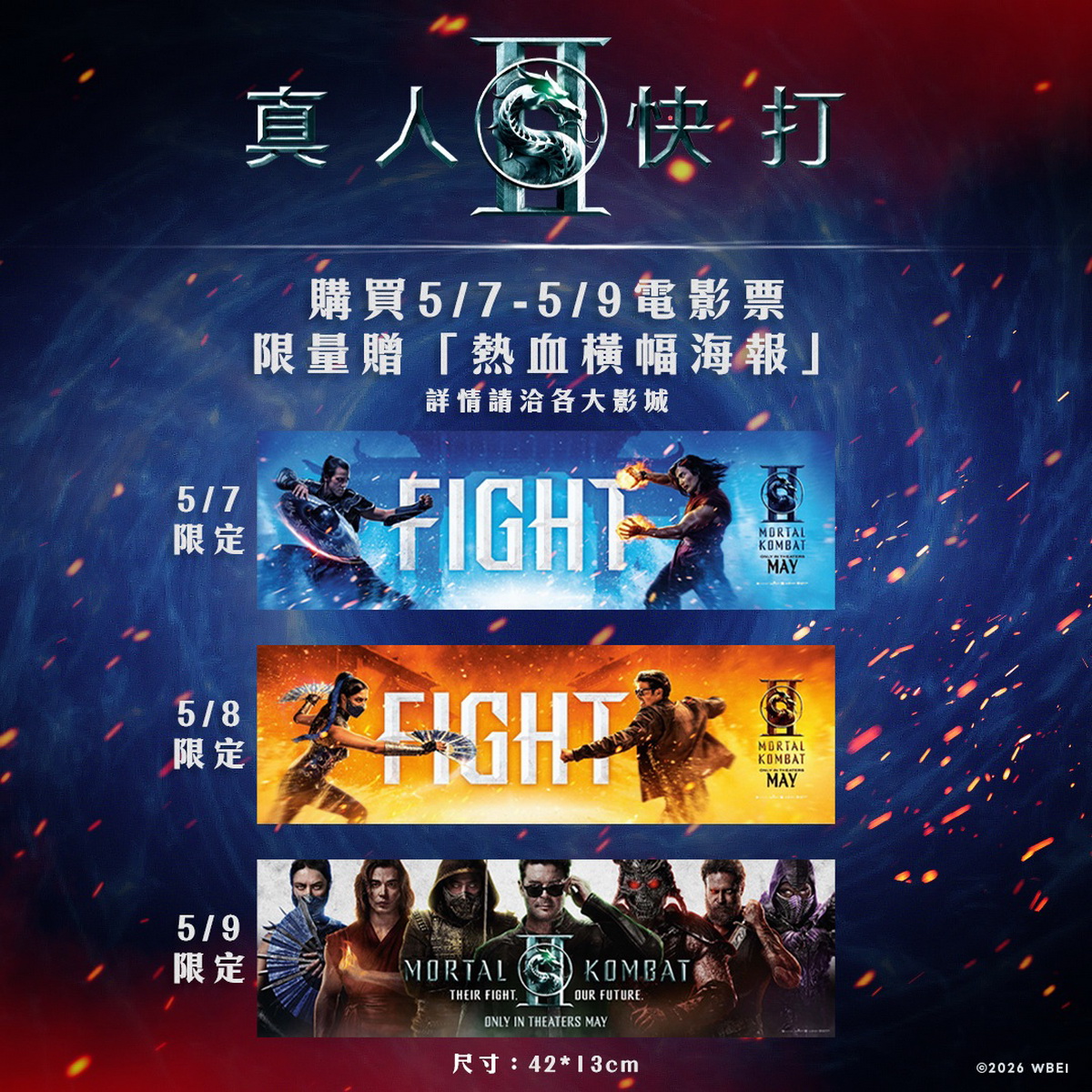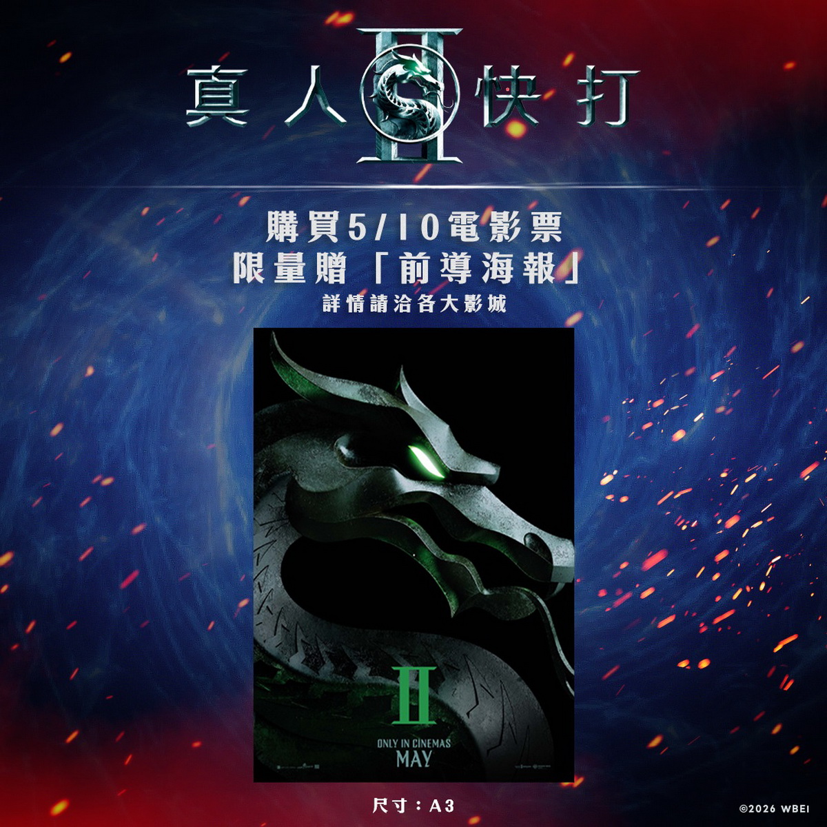 最受玩家與影迷期待的遊戲改編電影續作【真人快打 II】即將上映!本片找來以《幕府將軍》勇奪金球獎的日本男神真田廣之、淺野忠信再度攜手主演,以及影集《黑袍糾察隊》男星卡爾艾本首度參戰,再度掀起跨次元的血腥死鬥熱潮。首集【真人快打】成功還原遊戲經典風格,在爛番茄影評網拿下高達85%的觀眾爆米花分數,對於向來容易「翻車」的遊戲改編電影而言,堪稱神作等級的成績。原班團隊全數回歸,更保證續集將「全面升級」,不僅動作場面進化為更激烈殘暴的對戰,角色規模更一舉擴編至18人,讓各路經典角色齊聚大銀幕展開極限廝殺,消息一出立刻引爆玩家社群,這次片商也超寵粉,一口氣推出多達8款特典海報,更規劃「特典攻略」邀請影迷參與挑戰。