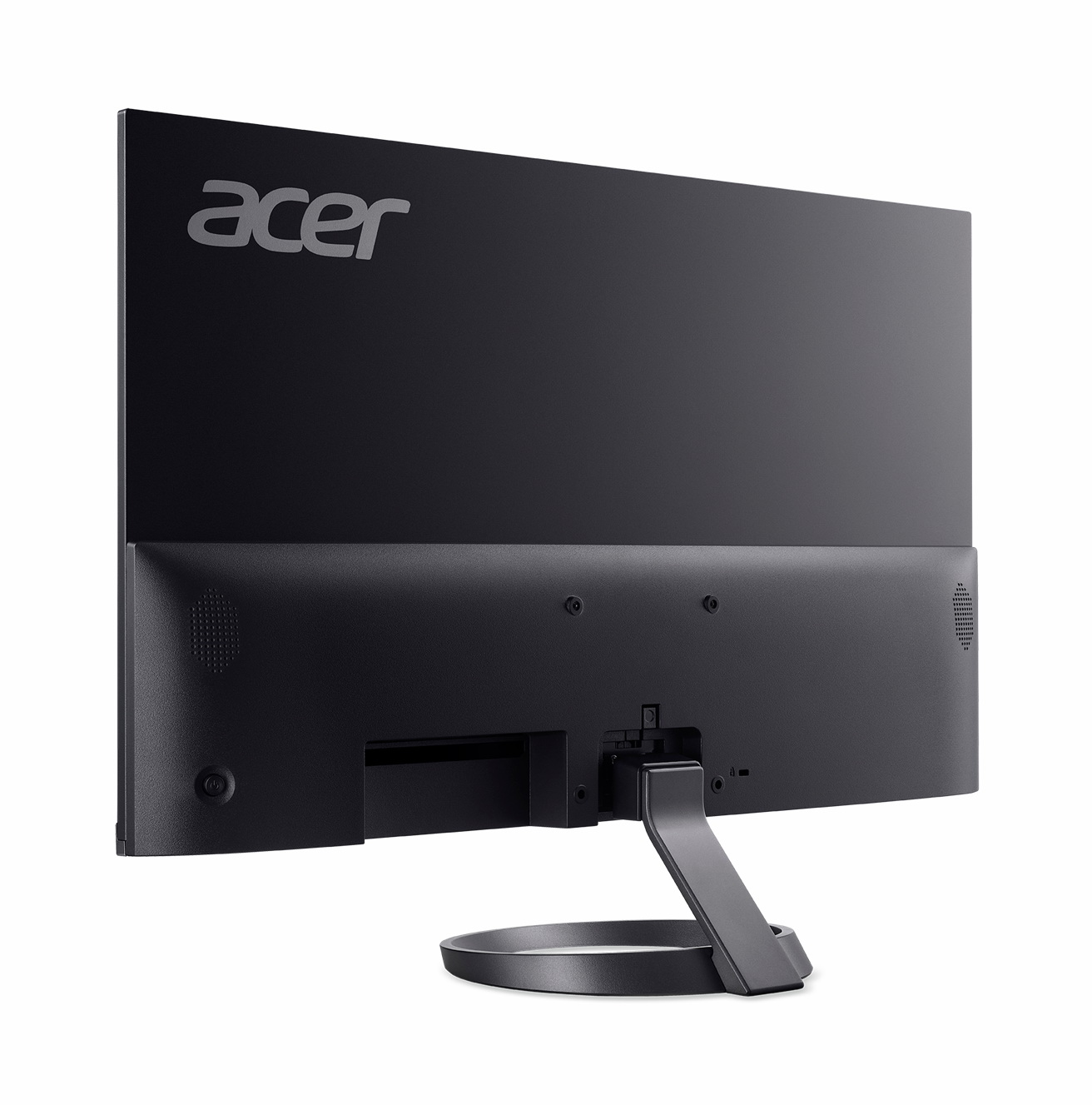 Acer R272 P1 採用經典的 ZeroFrame 無邊框設計,大幅提升螢幕占比,無論是單螢幕作業或多螢幕拼接,都能提供近乎無縫的視覺體驗。其超薄機身設計不僅節省桌面空間,簡約的黑色外觀更能完美融入各類辦公或居家環境。