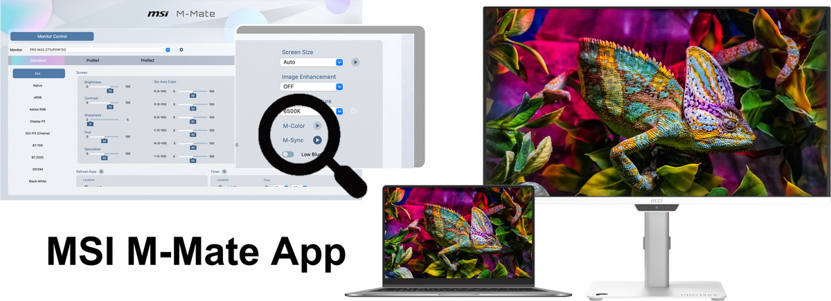 對於 MacBook 使用者,未來我們將釋出「M-Mate App」,內含「M-Sync」功能提供用戶同步調整Macbook音量、亮度與顯示器的參數設定,便於MacBook 使用者使用。同時針對「PRO MAX QD-OLED機種」還新增「M-Color 與M-Sync功能」,「M-Color」可將螢幕的色彩設定與 MacBook 的色彩配置一致,「M-Sync」提供用戶同步調整Macbook音量、亮度與顯示器的參數設定,便於MacBook 使用者使用。