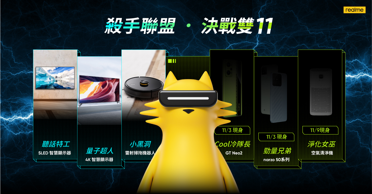 realme雙11催落去! 7大新品連擊,殺手聯盟角色大公開
