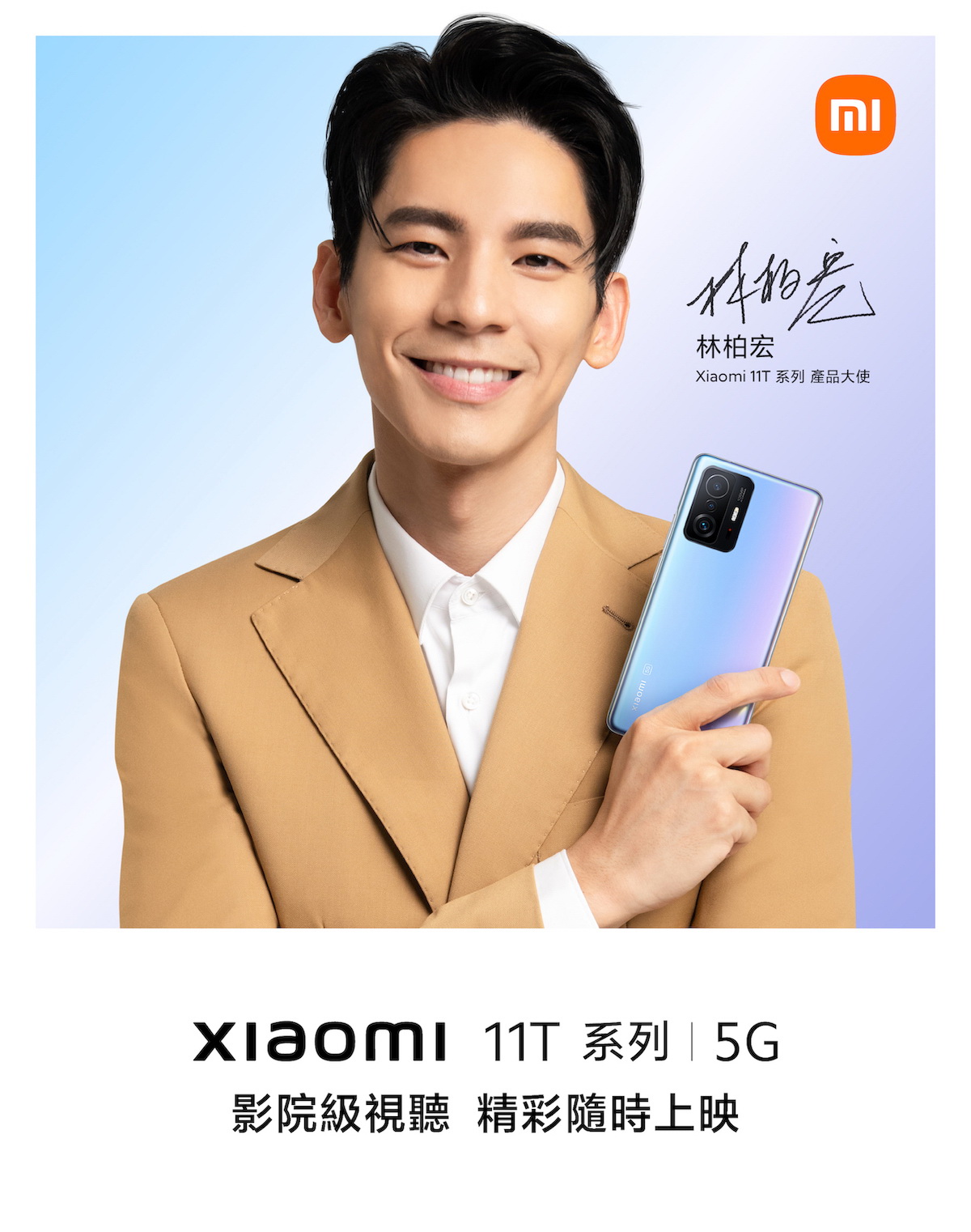小米台灣更邀請到新生代電影男神 – 林柏宏擔任Xiaomi 11T系列產品大使,林柏宏也以影片方式,於今(27)日Xiaomi 11T系列發佈會上分享身為米粉對於Xiaomi 11T系列的愛用心得,新生代電影男神暨Xiaomi 11T系列產品大使 林柏宏表示:「Xiaomi 11T系列擁有電影級相機、影院級視聽及劃時代的極速充電技術,超越我對攝影與日常使用的期待,讓我從電影鏡頭下的演員,搖身成為自己生活大片中的掌鏡者。我很高興我是一位米粉,享受Xiaomi 11T的科技之美,讓我的精采生活隨時上映。」新生代電影男神暨Xiaomi 11T系列產品大使 林柏宏熱情邀請粉絲們用Xiaomi 11T主導自己的精彩生活!