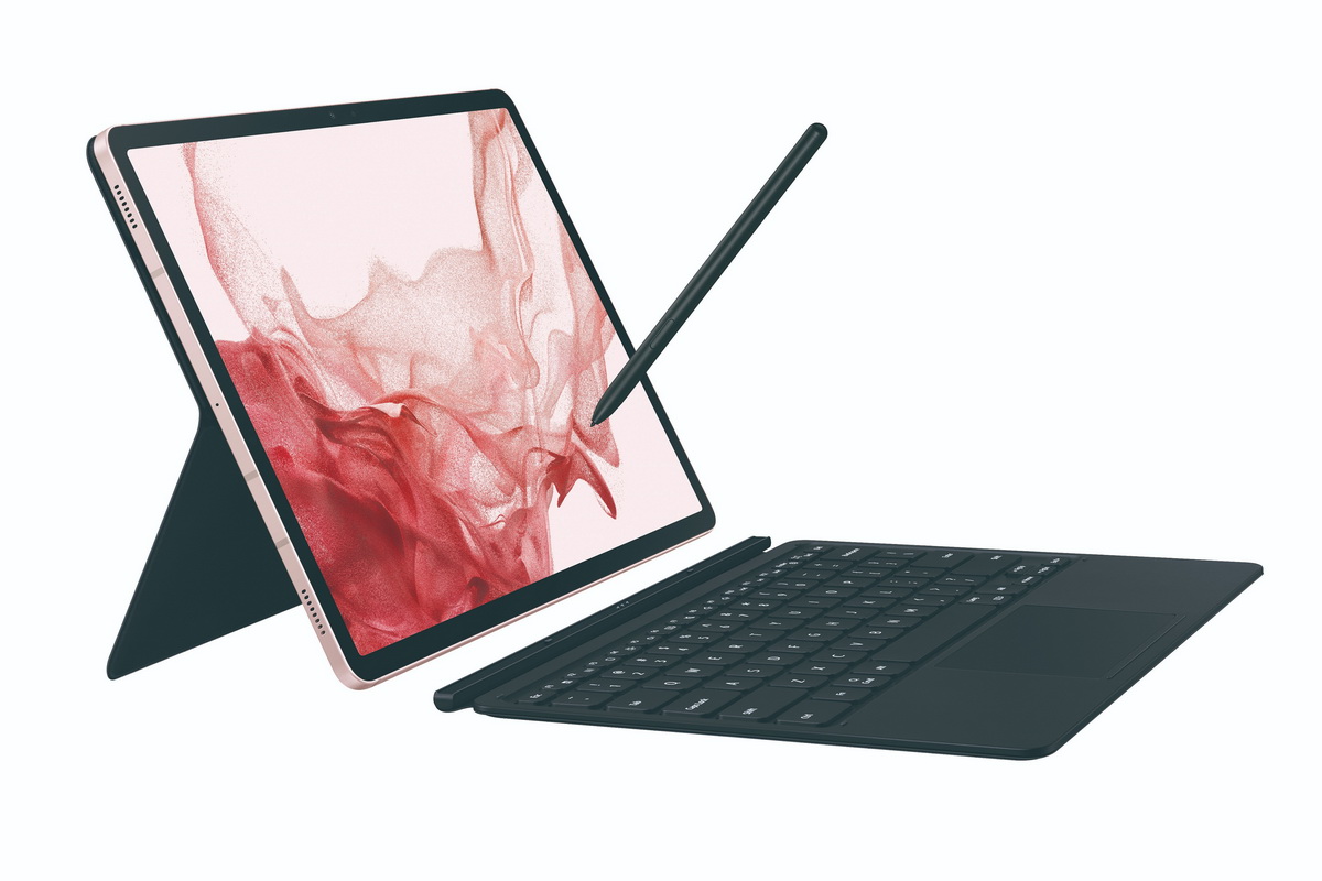 Galaxy Tab S8 Ultra|S8+ 鍵盤套裝組將於2月15日至2月28日開放指定通路預購, Galaxy Tab S8旗艦系列自3月4日起在全台三星智慧館、三星商城及各大經銷通路上市(註一)。Galaxy Tab S8 Ultra推出黑耀灰鍵盤套裝組,建議售價NT$42,990(含Galaxy Tab S8 Ultra Wi-Fi版乙台及書本式鍵盤皮套乙組)。Galaxy Tab S8+|S8則推出黑耀灰、粉霧金兩色,皆有5G及Wi-Fi版可供選擇;5G版本單機建議售價分別為NT$33,990及NT$27,990、Wi-Fi版本單機建議售價分別為NT$26,990及NT$20,990;另亦推出Galaxy Tab S8+ 鍵盤套裝組,建議售價NT$30,490(含Galaxy Tab S8+ Wi-Fi版乙台及書本式鍵盤皮套乙組),助星粉多工效率大躍進(新聞附件一)。