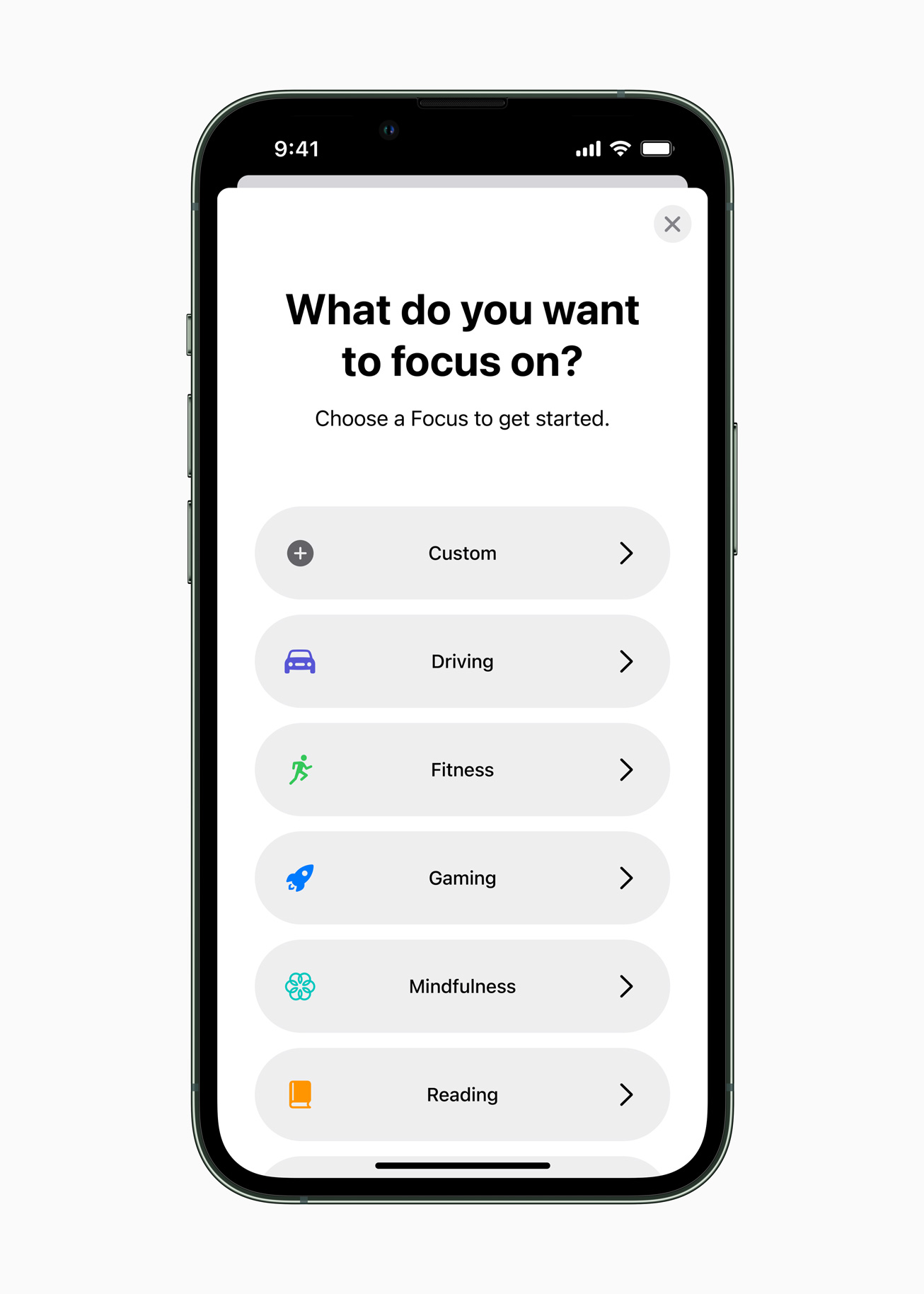 iOS 15 的「專注模式」幫助使用者降低干擾。