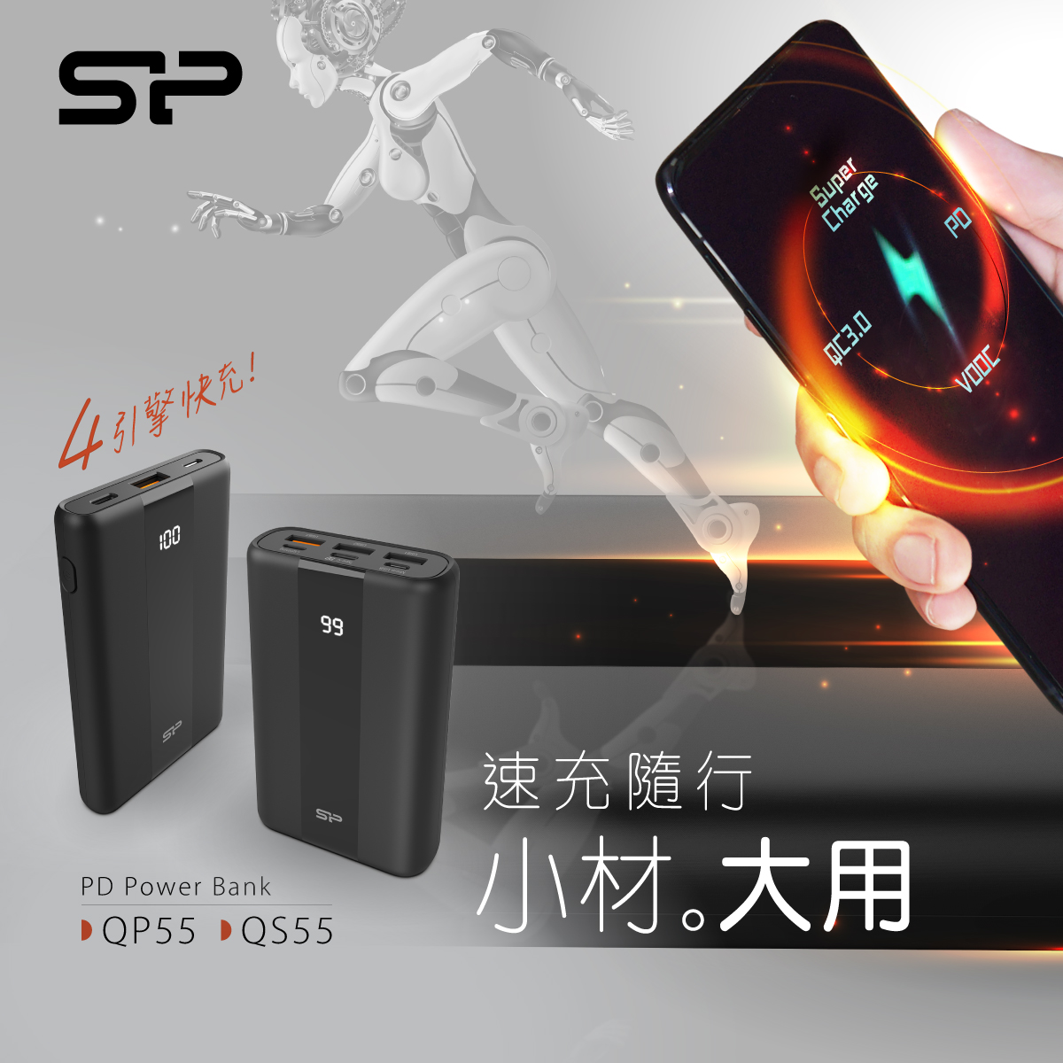 隨著我們對於各式智慧裝置的依賴,行動電源已成為每個人外出隨身不可或缺的配備之一,SP廣穎持續看好快充行動電源市場,不斷開發推出新品。新推出系列產品-「QP55 (10,000mAh) & QS55 (20,000mAh)」。