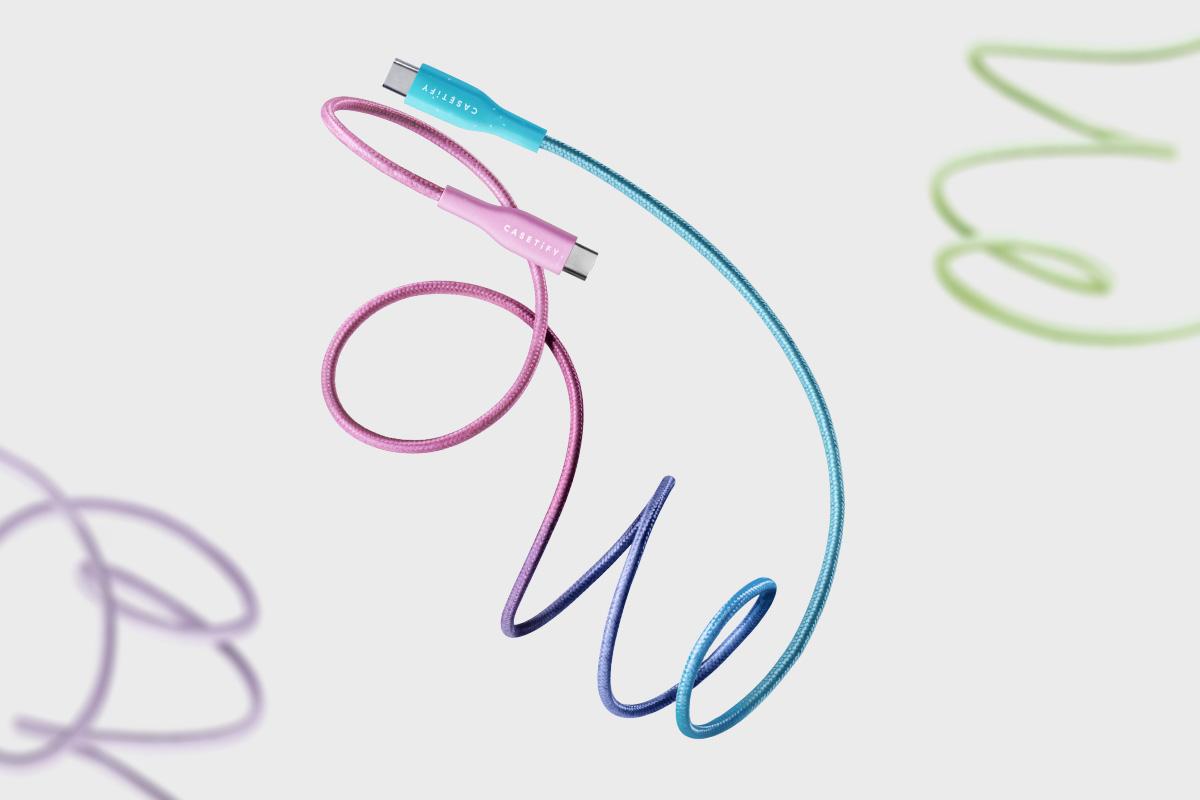 隨著 iPhone 15 系列新機全面改為 USB Type-C(又稱 USB-C)接口後,CASETiFY 也隨之推出了「PowerThru™ 充電線」,除了具備穩定快充的功能外,它採用弧形連接頭增強耐用性,並且以堅固耐磨的環保尼龍織繩所打造,更部分採用來自回收舊手機殼的 Re/CASETiFY™ 顆粒,兼具實用性與環境永續。「PowerThru™ 充電線」不僅推出 USB-C 至 USB-C 與 USB-C 至 Lightning兩種款式,皆支援所有 USB-C 接口的 Apple 產品,還有 1 公尺與 2 公尺兩種不同長度選擇,以及黑色、棉花糖色、薰衣草色與薄荷綠色等四種顏色,售價為新台幣 770 元,若搭配 CASETiFY 手機殼一起入手還可享有現折 150 元優惠。