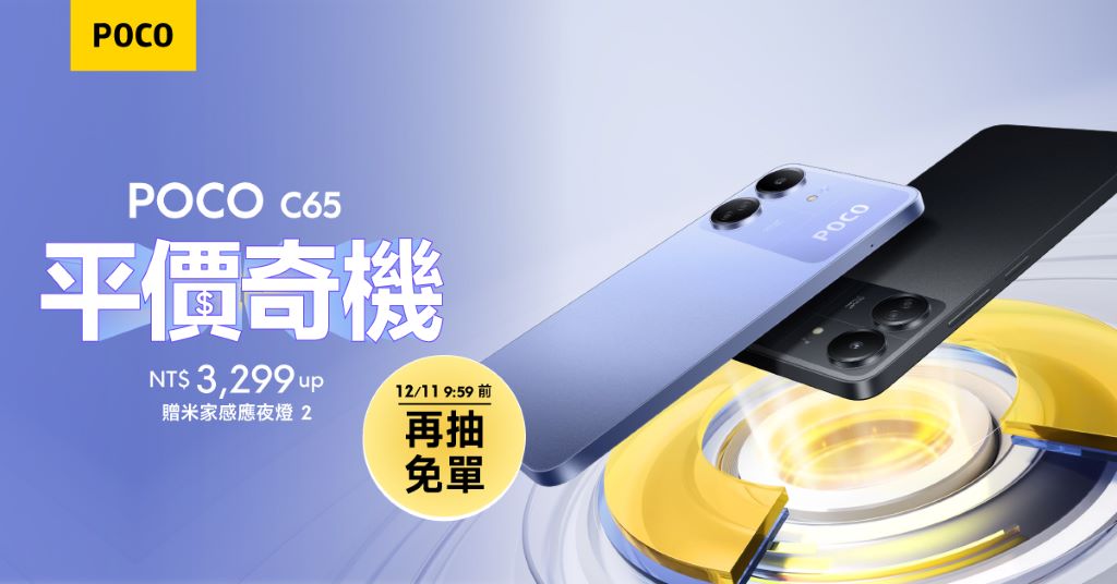 POCO C65於12月6日開放預購,最低只要$3,299元起