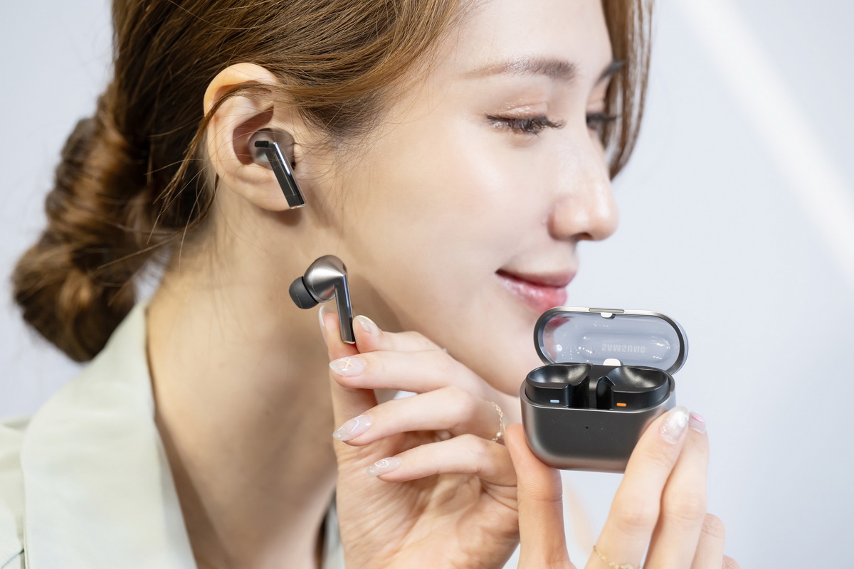Galaxy Buds3系列基於廣泛蒐集的統計數據,採用全新運算設計,造型親膚貼耳。高質感的長柄設計,前衛有型、潮流十足,輔以LED動態燈效(註三十二)畫龍點睛,鎖定追求時尚品味的消費者。此新型設計實現更直覺的操作體驗,輕輕捏住、向上或向下滑動長柄,便能操控耳機,兼具便利性與視覺美感。因應不同使用需求,Galaxy Buds3和 Buds3 Pro各有獨特的造型設計,Galaxy Buds3 Pro採用入耳式設計,鎖定追求身臨其境音效的族群,Buds3則採用耳塞式設計,適合長時間使用耳機者。