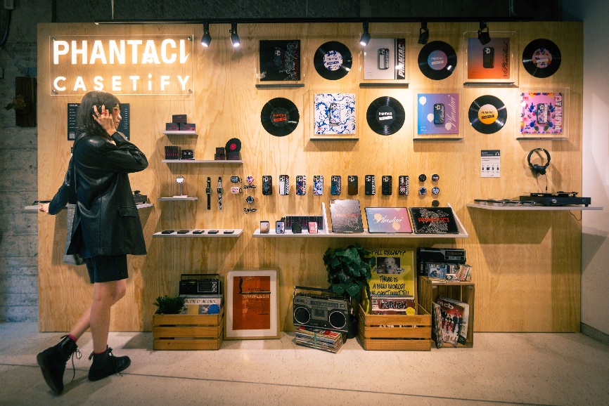CASETiFY 於店內特別打造一面融合 PHANTACi x CASETiFY 聯名系列商品及音樂作品的藝術體驗牆。消費者可以挑選一款心儀的手機殼,將其放置在特製的黑膠機轉盤上,隨即戴上耳機,享受由知名 DJ 左光平為每首歌曲提供的詳細講解,深入剖析每件作品背後的創作故事,揭開音樂與 CASETiFY 聯名設計之間的巧妙連結,共同見證音樂與潮流文化的完美交融。