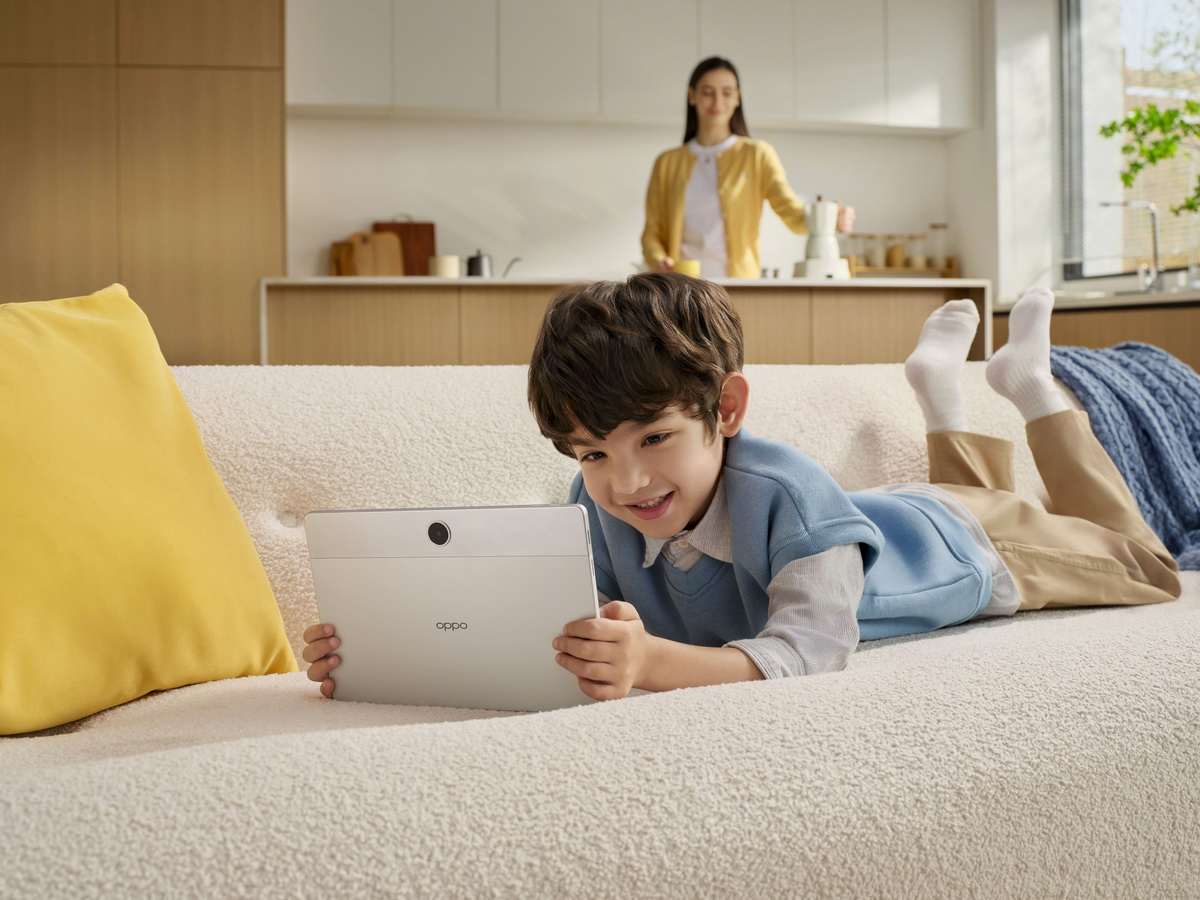 OPPO Pad SE加入兒童模式,可指定應用程式範圍、使用時長、密碼權限,塑造安全的上網環境;並智慧調整螢幕亮度,保護孩童視力。
