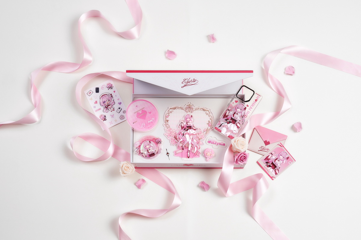 「愛莉希雅限定禮盒」內含:壓克力立牌、徽章、保護套、小卡、信封、貼紙、手機殼、充電線保護套及SIM卡針,從外盒包裝到內容物設計細節滿滿。愛莉希雅造型以柔和的粉色系搭配精緻蕾絲、緞帶與玫瑰點綴,打造如夢似幻的浪漫風格。ROG Phone用戶更可獨享愛莉希雅限定主題包,從動態桌布、來電顯示、充電狀態動畫、隨顯螢幕及AniMe Vision動畫,全方位沈浸迷人幻境中!
