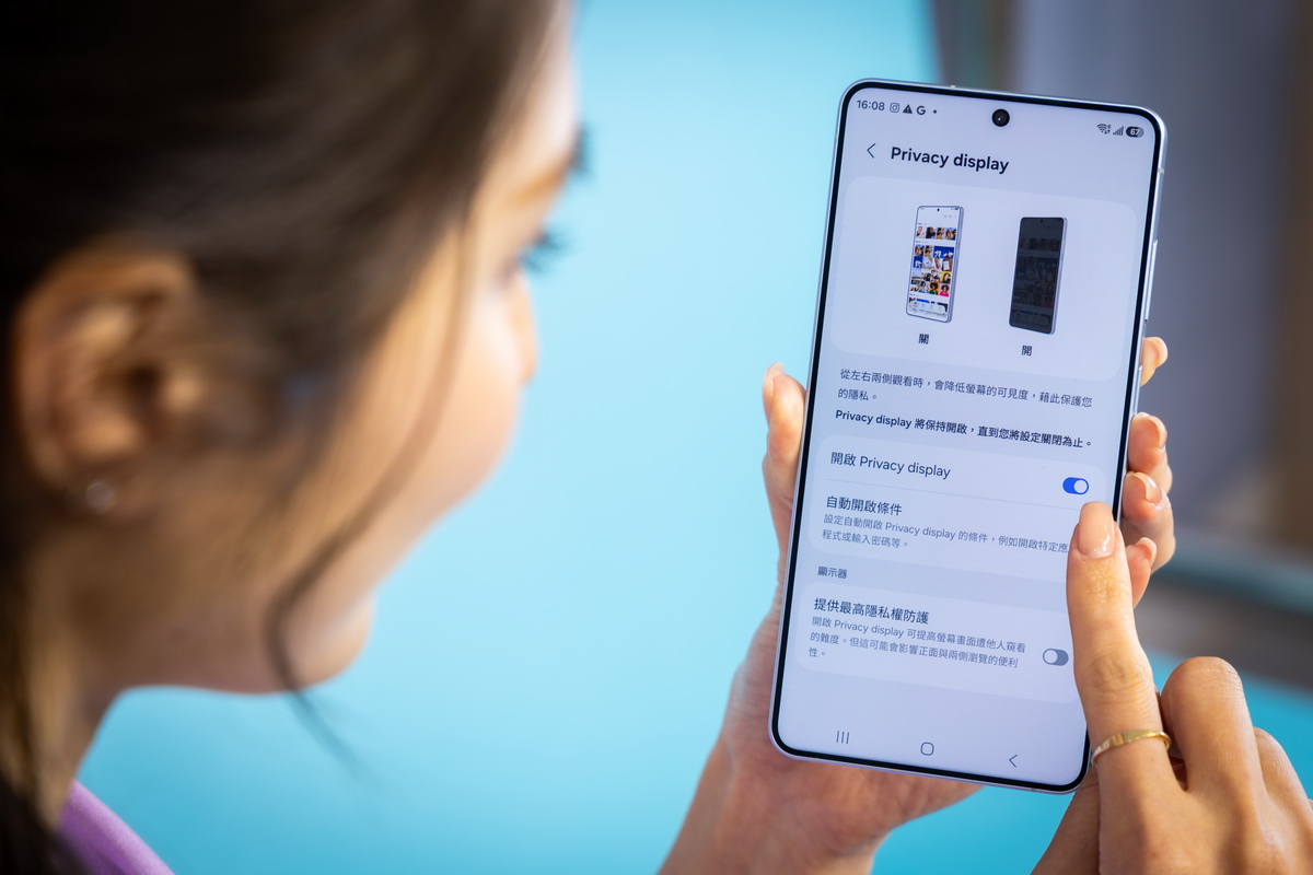 藉由控制像素的光線散射方式,這項顯示技術在日常使用中能讓畫面保持清晰、明亮且舒適,同時有效限制旁人窺視。不同於傳統的防窺保護貼,當Galaxy內建的智慧防窺處於關閉時,可維持各方向的完整視角;而在啟動後,則能有效降低側邊視角的可視度,即使切換螢幕的橫向與直向模式,亦能發揮側面防窺效果。
