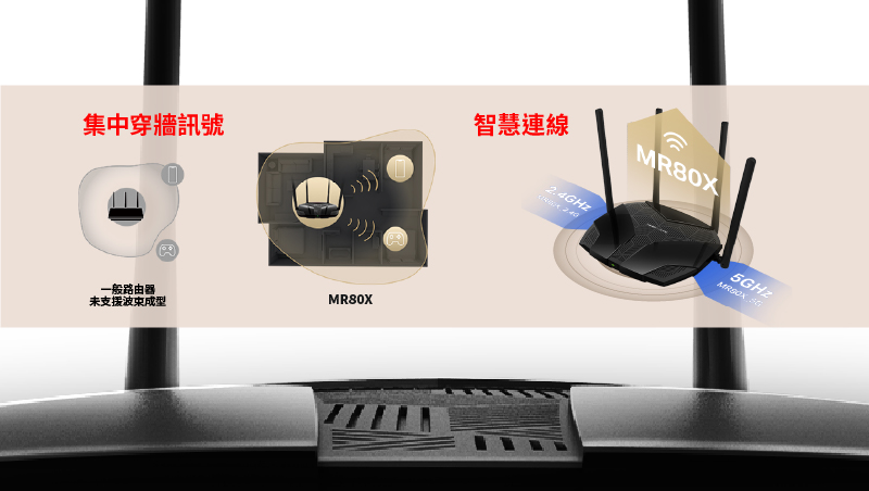 當你住的公寓或者套房與鄰居較為緊密,家裡的Wi-Fi恐會受到周遭的無線網路干擾而發生網路延遲問題。MR80X 可以透過 BSS 色彩標記不同網路路由器資料,大幅減少附近網路干擾。MR80X 外型經重新設計,透過四個外部高增益天線,藉由波束成型技術可以放大 Wi-Fi 訊號,將無線訊號強度集中,MR80X同時具備AI智慧演算法,自動辨別家中正在連線的裝置,將裝置分配到最佳訊號和速度的頻段,即使在家中移動始終可以保持最佳訊號,也能夠保持穩定不間斷的上網品質。