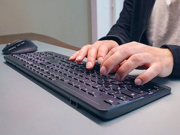 三種可調式傾斜角度(0°、4°、8°)、堅固的金屬底板和橡膠腳墊,提供符合人體工學的舒適感和可靠的支撐。八個媒體和辦公室功能快捷鍵可加快您的工作流程,而整合的 Co-Pilot 按鈕可直接存取 AI 支援。單次充電即可續航長達五個月,確保您的工作不間斷。