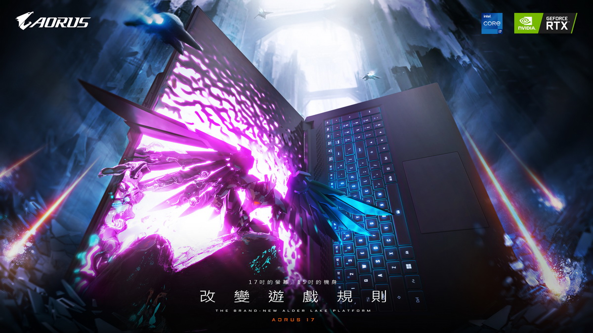 全球電腦領導品牌GIGABYTE技嘉科技旗下AORUS專業電競筆電於今日(2022年1月5日)首發搭載10奈米Intel第12代處理器的AORUS 17、AORUS 15,以及AORUS 5,本次新品主打「改變遊戲規則」, AORUS 17首創採用四邊極窄邊框電競螢幕,擁有90%屏佔比,螢幕下邊邊框面積減少約30%,大大提高視覺延伸性,有如觀賞巨幕電影之沉浸感受。螢幕更新率方面更來到最高360Hz, 畫面不撕裂、不模糊,有著3毫秒極短的反應時間,讓玩家在遊戲戰場上擁有極大的優勢。受惠於四邊窄邊框和超高屏佔比的特性,使17吋大螢幕電競筆電僅有15吋的機身尺寸,大幅提升日常可攜性,將筆電輕鬆滑進背包,隨時隨地享受頂配電競室體驗。