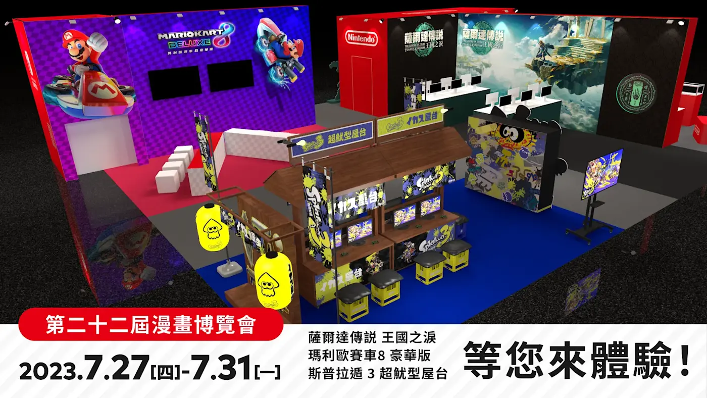 ※由於7/30(日)上午將於遊戲體驗攤位舉行「《斯普拉遁 3》2023漫博盃」與「《瑪利歐賽車8 豪華版》2023漫博盃」之預選賽,《薩爾達傳說 王國之淚》遊戲體驗活動將在7/30(日)10:00-12:30暫停,並於12:30後重新開始。